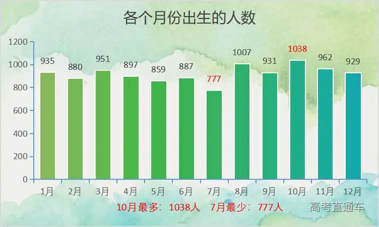 在各个月份出生的人数中十月份出生的萌新最多,高达1038人,七月份出生的人数最少,为777人。你是几月出生的呢?快留言分享吧!