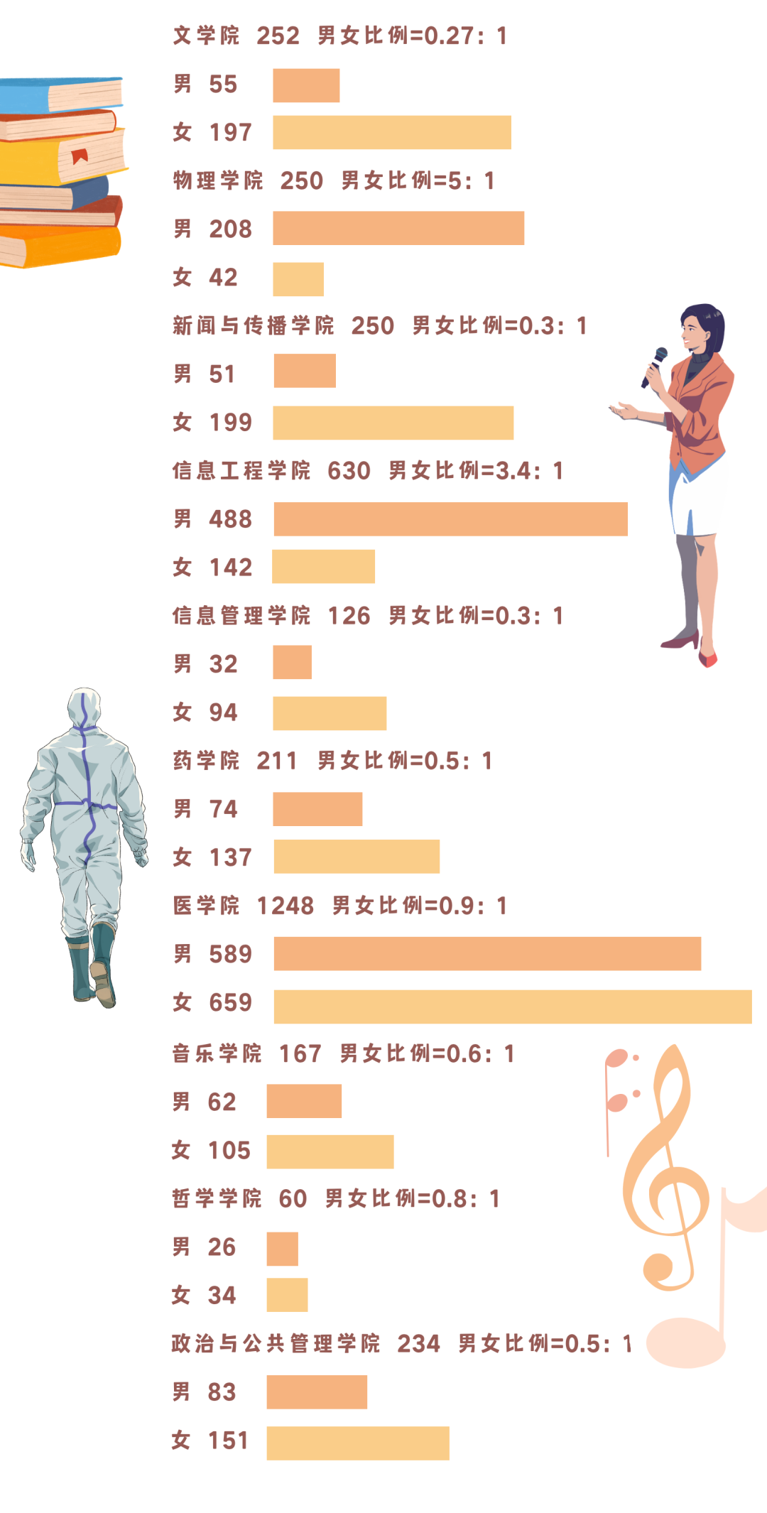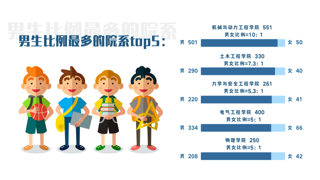 看了这么多男女比例,小萌新们有什么感想呢?有的学院“万花从中一点绿”,有的学院“男生一枝独秀”。郑大这么大,学生活动这么多,小萌新们就不必为本院的男女比例忧愁啦~