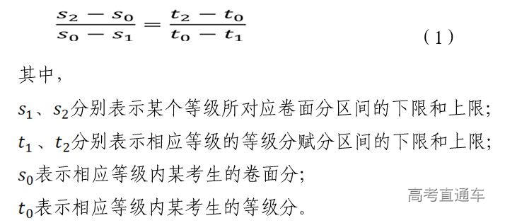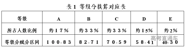 来源:高考直通车综合自广东省教育考试院 2021年起,广东将开始实施新高考改革政策。对于新高考,很多同学还是不太理解。新高考下,如果一个同学在夏季高考中,6科考试都交白卷,请问他最后的分数是多少? 答案是:60分!为什么不是零分呢?接着往下看! 2021年新高考成绩如何计分 2021年起,广东夏季高考的总成绩构成是:总成绩(满分750分)=统一高考科目成绩(450分)+选考科目成绩(300分),具体如下图: ★统一高考科目:语文、数学、外语使用卷面成绩计入考生总成绩,每门满分150分。 ★选考科目:①物理/历史使用原始成绩计入考生总成绩,每门满分100分;②思想政治/地理/化学/生物按等级赋分后计入考生总成绩,每门满分100分。 可见,思想政治/地理/化学/生物这4门再选科目是按【等级赋分】计入总成绩的。也就是说,这4门科目的卷面分数,未必是最终计入高考总成绩的分数。那么,等级赋分怎么计算?等级赋分受哪些因素影响? 等级赋分的具体算法 ★等级赋分使用科目:政治、地理、化学、生物 下面我们来看一下等级赋分的具体步骤! 将思想政治、地理、化学、生物学每门科目考生的卷面分从高到低划分为A、B、C、D、E共5个等级,各等级的人数比例分别约为17%、33%、33%、15%、2%。 根据考生卷面分划分的等级,来换算等级对应的分数区间。等级分换算对应表如下: 运用等级赋分公式将考生选考科目卷面分换算成等级分,四舍五入得到考生转换后的等级分,计入最终总成绩。等级分计算公式: 具体说明:等级分的满分值为100分、起点分值为30分,从A至E每个等级按照1分1档的分数间隔对各个等级进行连续赋分,各个等级的等级分赋分区间从17到10分不等(见上方等级分换算对应表)。依此,把每个选考科目考生群体的等级成绩从高到低(从A到E)转换为100至30分的等级分数,每个等级分数都在一定的等级分区间内。根据每个考生的卷面分数及其所在等级的等级赋分区间,运用等比例转换法则将其卷面分换算成等级分。在A、B、C、D、E的每个等级内卷面分不同的考生,根据等比例转换法则可计算得出不同的等级分,从而确保卷面分较高的考生换算得到较高的等级分。(摘自广东省教育考试院) 上图当中的重点是换算公式。如果看懂了这个换算公式,那么等级赋分的重点就算是掌握了。假如看不懂,别着急,我们一起来举个例子: 已知: 1.某同学地理科目卷面分为75分; 2.按照其在该科目考生群体中的卷面分排位确定的等级为B等级; 3.当次考试该科目B等级所对应的卷面分区间为80~61(该数数值是以当次考试对应等级的具体情况有所变化); 4.查等级分换算对应表,可知B等级的等级分赋分区间为82~71; 那么根据公式,可以计算出该同学地理科目的等级分: 即该同学的地理等级分为79分。 看完上述讲解,能够理解等级赋分怎么计算吗?莫慌,考试院会帮你们计算好,最终将换算结果呈现在同学们的高考成绩单中。你们尽管考高分就好。 相信不少同学/家长也发现,最终等级赋分的分值,会受该科目在当次考试中的整体情况和考生排位影响。 新高考等级赋分的影响 新高考改革后,政治、地理、化学、生物这四门选考科目的等级赋分,不仅受到卷面分影响,还与命题难易程度、所选科目人数息息相关。 1、考生成绩进行等级转换后,与原始分(卷面分)相比,可能偏高,可能偏低,也有可能相等,这主要取决于命题的难易。 如果题目偏简单,考生原始分数就会整体偏高,转换后的等级分数低于原始分数的可能性就比较大;反之,如果题目偏难,考生原始分数会整体偏低,转换后的等级分数就可能高于原始分数。 2、当排名固定时,选考同一类型科目的人数越多,该科目赋高分机会越多。 假设小明同学选考化学科目,原始分94分。如果全省共有5万人选考化学,小明排3000名,按照等级比例,他的等级为A(约17%);如果1万人选考,那么同样考3000名,就成为B(约35%)等级,最后的赋分也会差一个等级。 相比于以前“分数大于天”的情况,新高考改革后,我们要更重视排名。面对更加激烈的竞争,你们准备好了吗? 看到这里,可能会有家长/学生会问,为什么同为选科,物理/历史却可以使用原始成绩? 为什么物理/历史使用原始成绩 物理/历史能使用原始成绩,是因为高校在录取时,将按物理和历史两个类别分列计划、分开划线和分开投档录取。选择物理或选择历史的考生在各自的序列中排队,成绩具有可比性。因此,物理/历史可以直接使用原始成绩。 其它4门科目等级赋分的意义 参考上面物理/历史可以使用原始成绩的原因,我们其实不难发现,考生从4门科目中选择的2门再选科目,会产生6个不同的选择组合。这样一来,会出现报考同一高校同一专业的考生,其2门再选科目很可能有所不同的情况。如果直接按原始卷面成绩来算,会出现不同的科目选考不同,不能比较的问题。如果直接使用卷面成绩,不够科学和公平。 我们来看一个通俗易懂的例子: 甲同学选考化学,乙同学选考地理,两人卷面成绩都是75分,但是甲学生在所有选考化学的学生中排名第1000位,乙学生在所有选考地理的学生中排名第3000位,两个科目的难度稍有差异。若只是按照卷面成绩来算,既不公平也不科学。 而等级赋分的换算中,等级区间比例可以保持考试每门学科成绩排名顺序不变,确保成绩转换公平公正,解决了上面我们所说的问题。同时,它充分体现学习的能力,以能力为导向