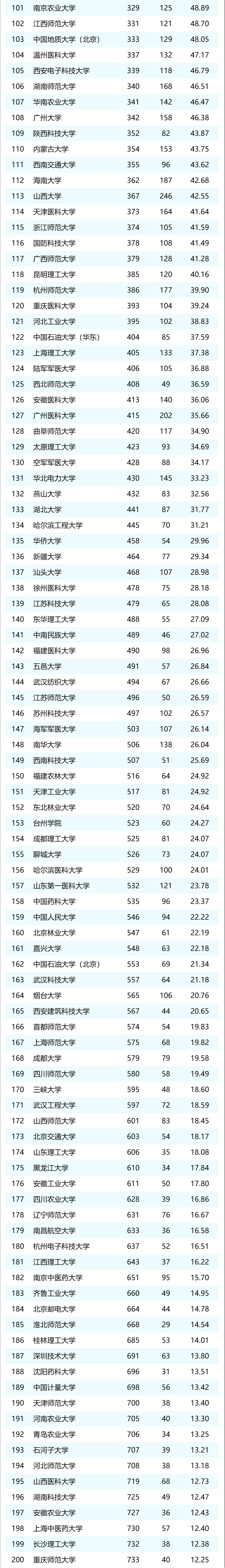 北京协和医学院、南方医科大学和中国药科大学等位列医药类院校前列,北京师范大学、华东师范大学和陕西师范大学位居师范类院校前列,中国农业大学、西北农林科技大学和华中农业大学位居农林类院校前列。