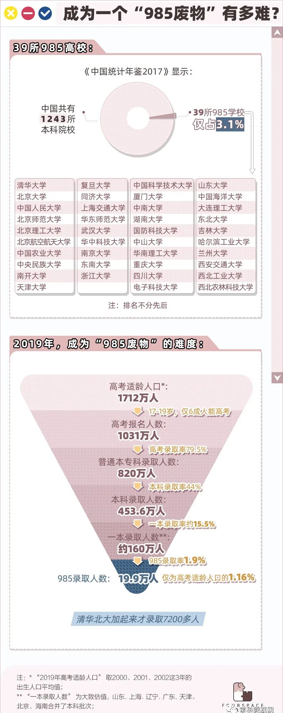 有一个流传很广的著名数字,即在中国拥有本科学历的人占总人口数约在4%。因此,当在一个自称“985废物”的群组里看到7万余成员,难免令人吃惊。也许有人浑水摸鱼进去,不过其引起的庞大群体的共鸣也不容忽视。