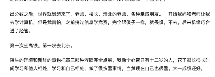 理所应当的,他以全校第一的成绩考进了全市最好高中的竞赛班,竞赛班高一学完高中所有课本的内容,高二做奥赛题,高三备战高考。他很快发现,班级里高手如云,自己反而成了不起眼的那个。高考结束时,全班所有人考上了重本。50名同学,他以将近40名的成绩进入武汉一所实力雄厚的985名校。