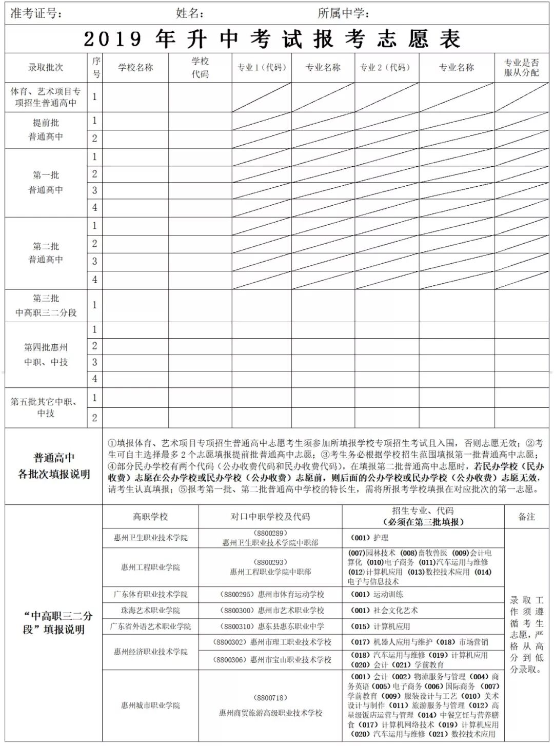 3、各学校要指导学生正确选择填报志愿(见2019年升中考试报考志愿表),继续巩固提高普及高中阶段教育的成果。