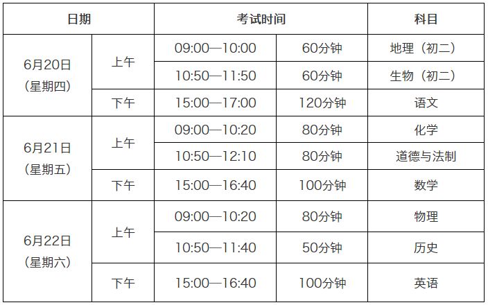 在充分征求委托省命题地市意见的基础上,经研究,现将委托省命题地市的初中学业水平考试时间安排如下:
