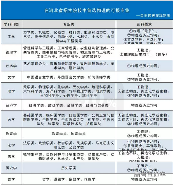 专业选择面广。由于有物理这个专业覆盖率较广的学科,大部分理工科专业都在可报范围内,并且政治学科也可以覆盖到一些偏文的专业,因此,它的可报专业超过96%以上,一些顶尖大学专业可报率甚至能达到100%。