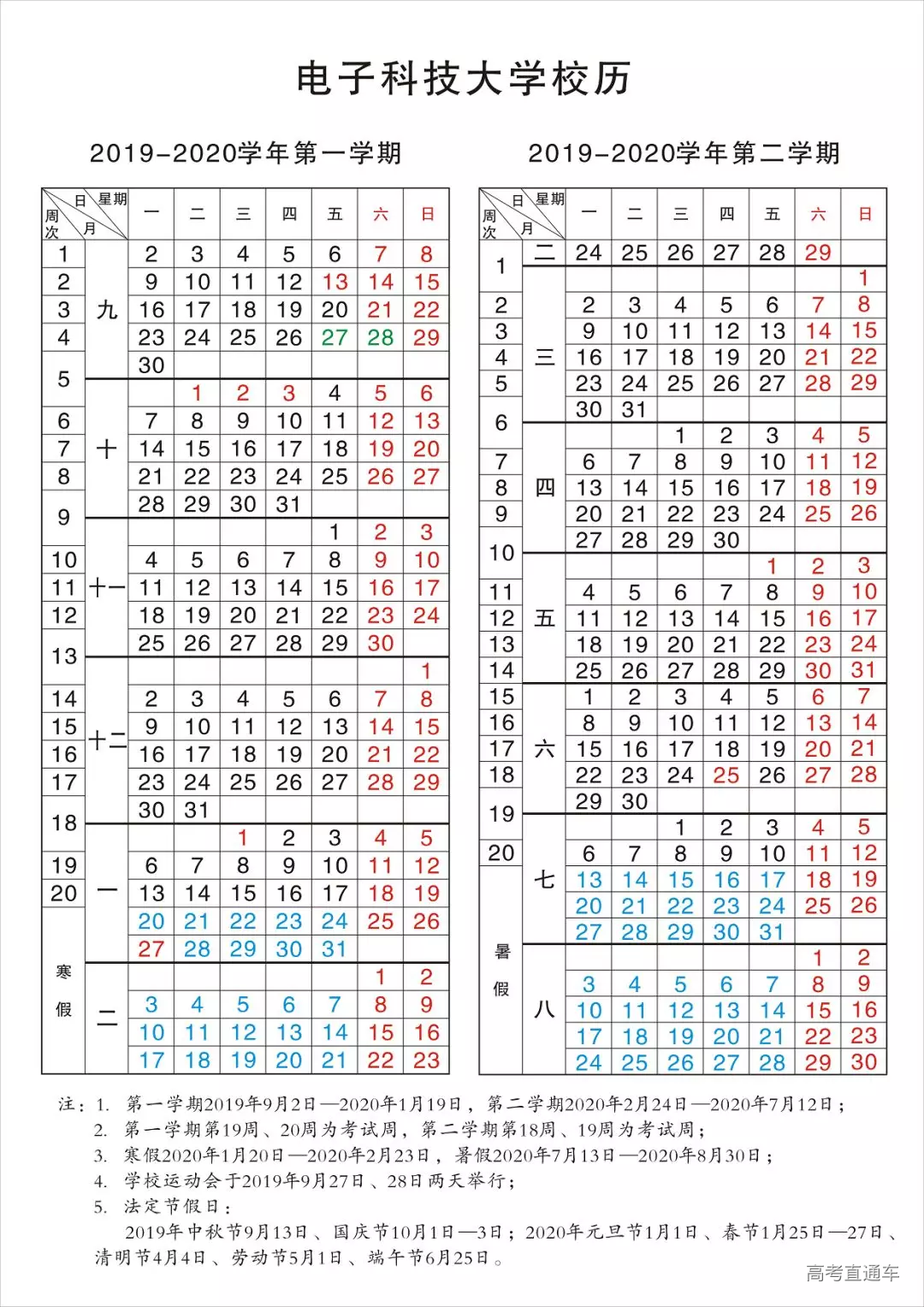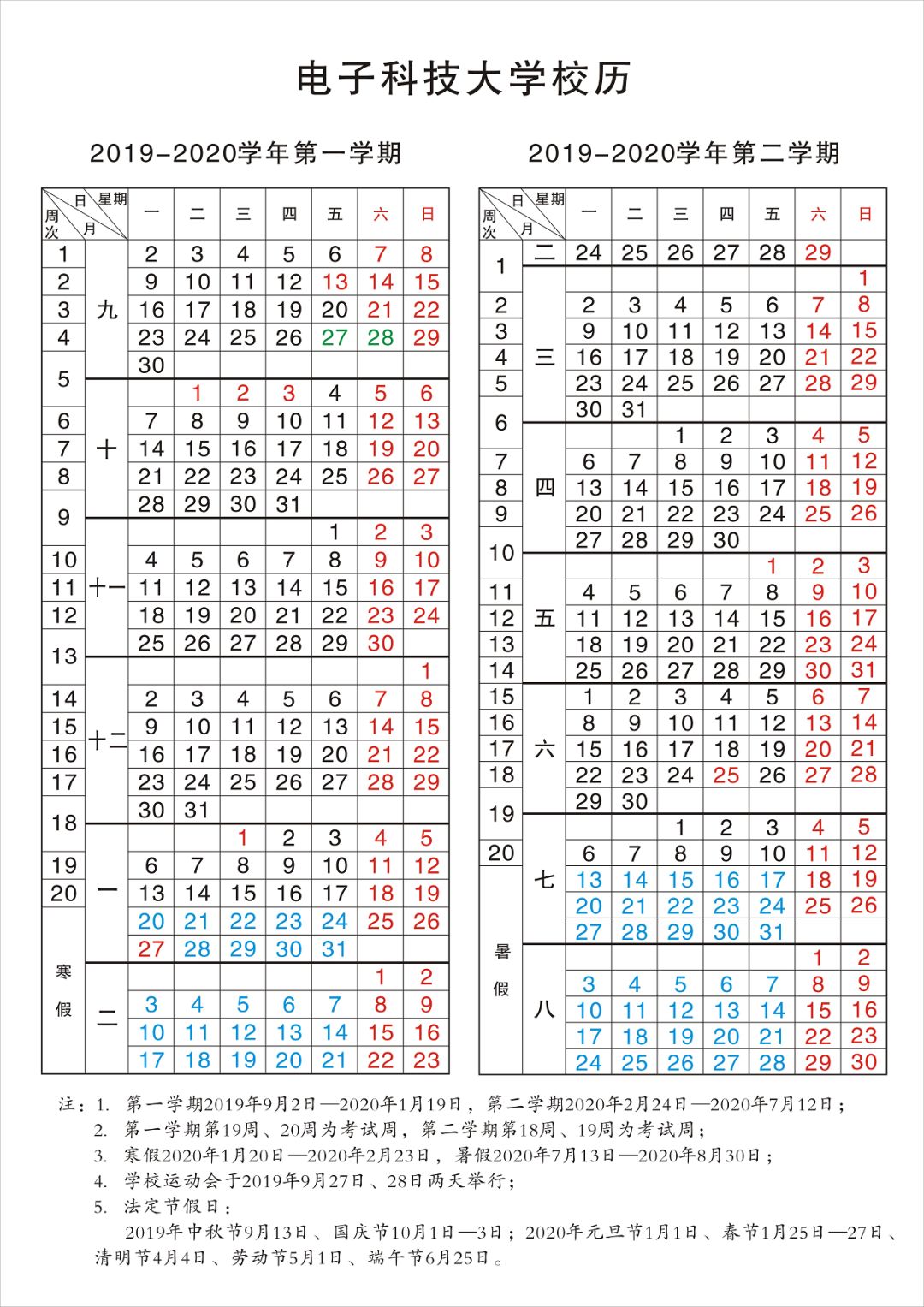 最后为大家附上2019—2020学年的校历~