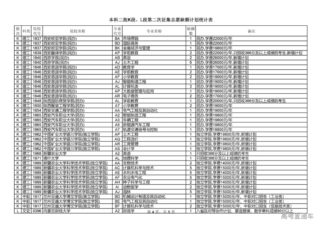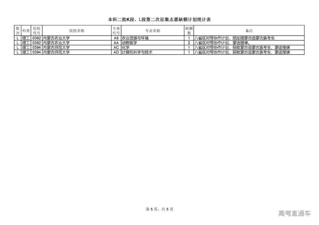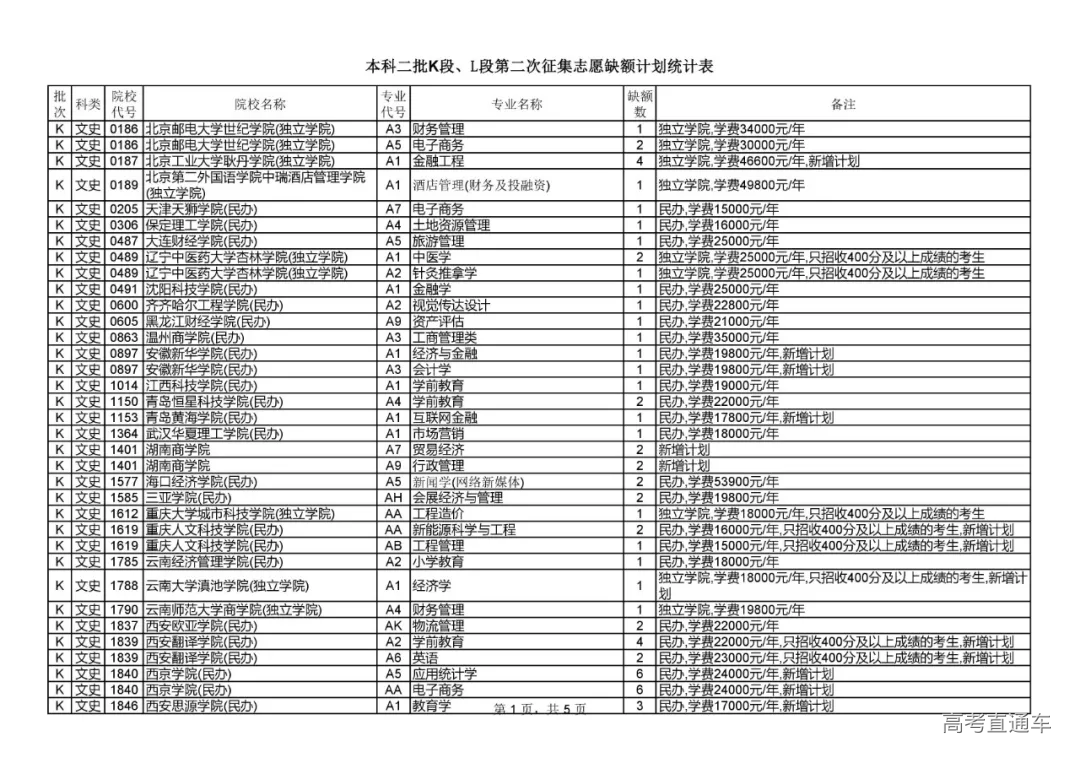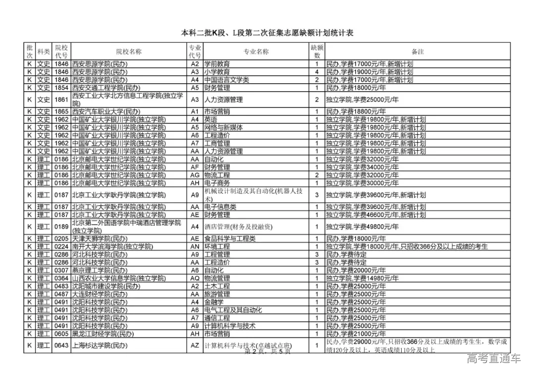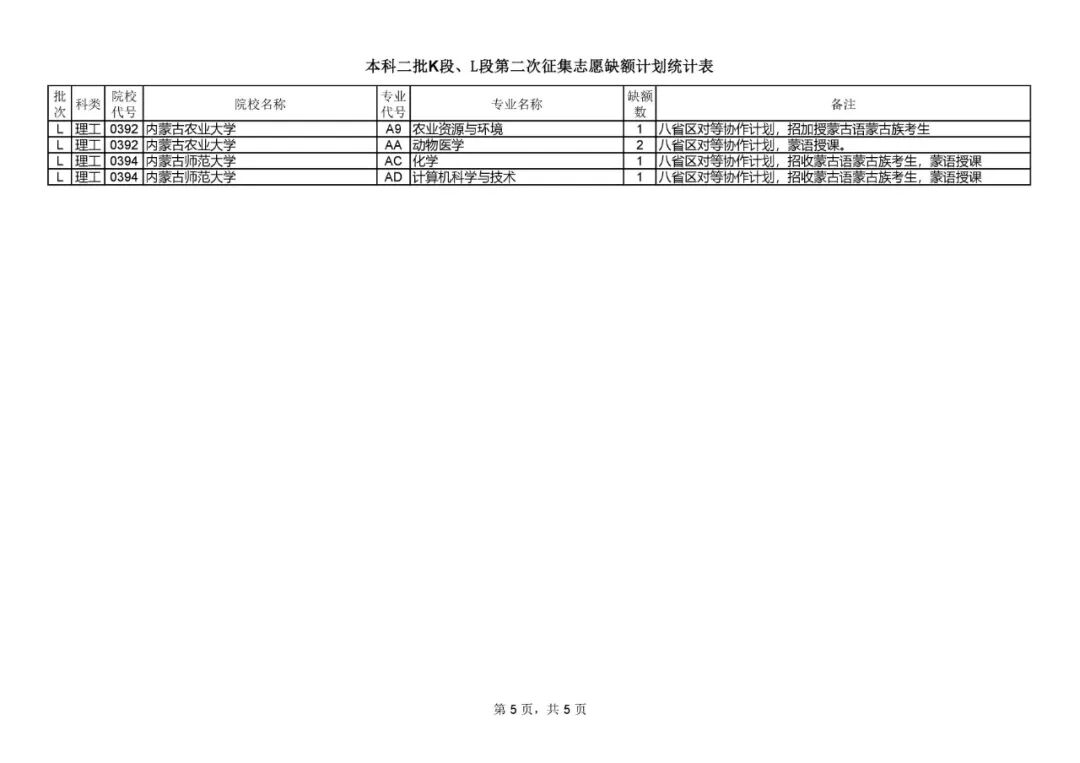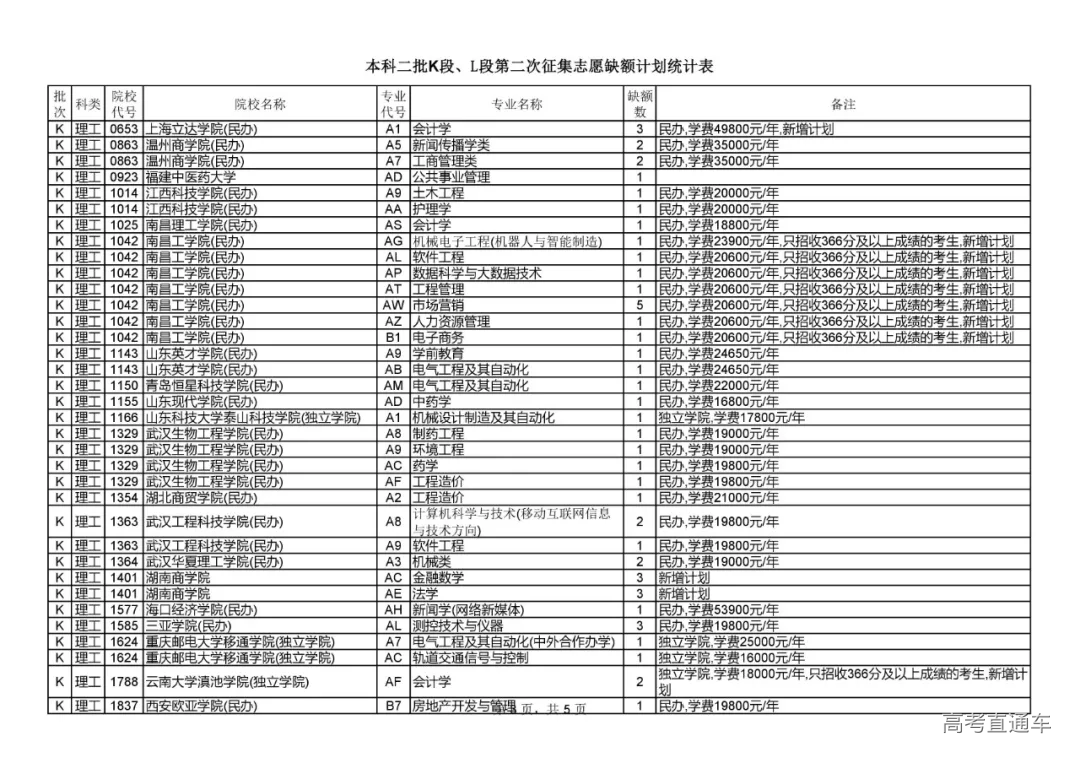 全省普通高等学校招生本科二批K段、L段第一次征集志愿已完成录取工作。现对第二次征集志愿工作说明如下: