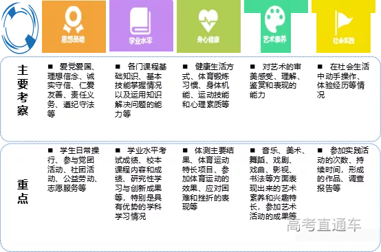 新高考在 “两依据”,即语、数、外三门高考成绩和学业水平等级考的选考科目成绩外,还有“一参考”,即高中综合素质评价,其要求高中学校如实记录,供高校在招生时参考使用。