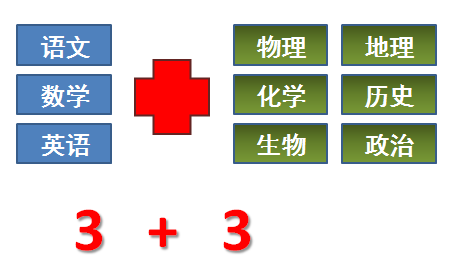 其中,“3+3”、“六选三”指的是,我们未来要参加的高考,其成绩由两部分组成: