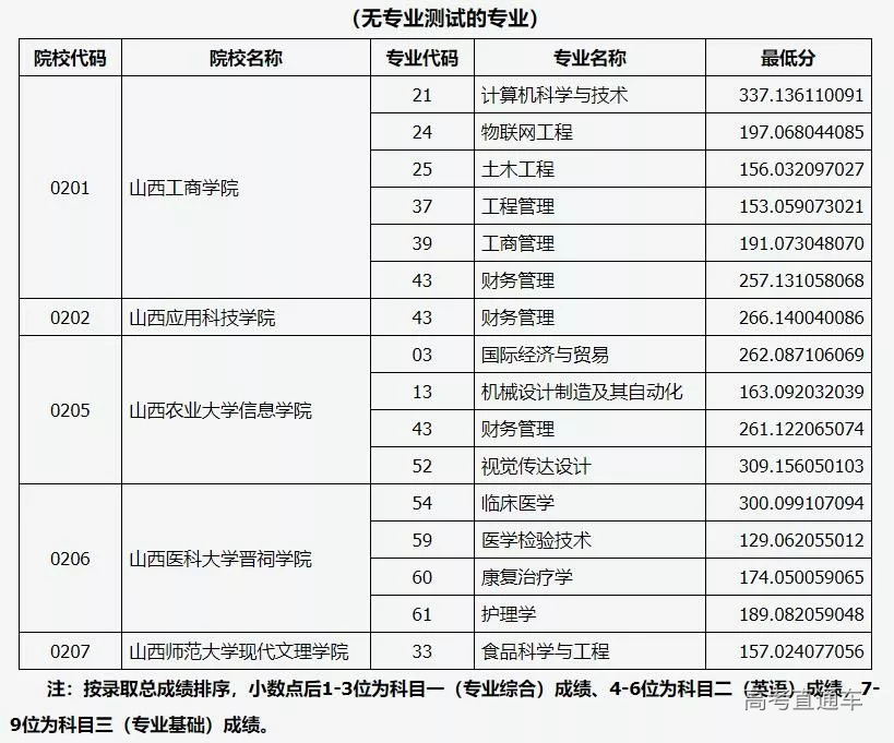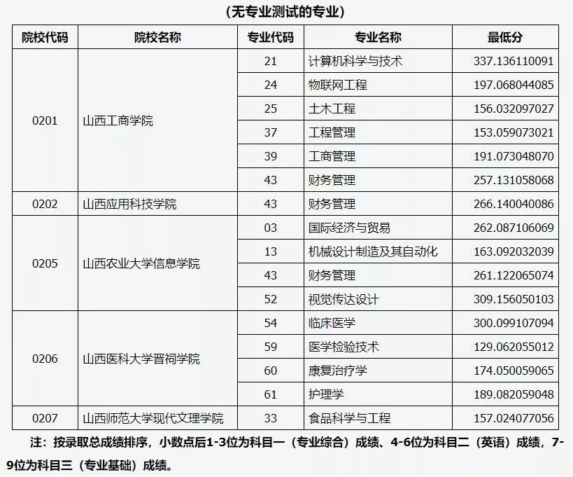 2019山西专升本第二批院校征集志愿公告(三)院校投档线