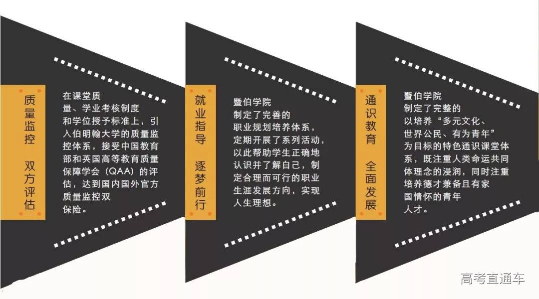 暨伯学院培养模式是4+0,即大学四年都在暨南大学番禺校区就读。就读期间,学生有机会前往伯明翰大学进行交流学习,也可以申请暨南大学和暨伯学院组织的国际交流项目,成绩优秀的学生有机会获得奖学金资助。