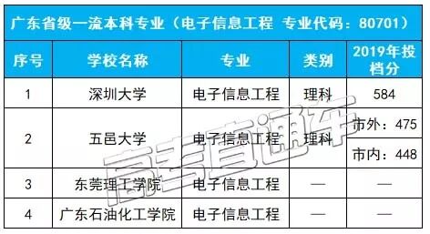 该专业省级一流高校:汕头大学、东莞理工学院、韶关学院、广东技术师范大学、广东石油化工学院、佛山科学技术学院、电子科技大学中山学院