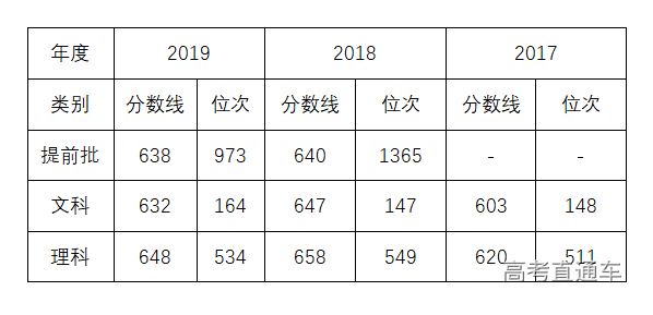 2019年录取最低位次为:本科批次文科全省排名164、理科全省排名534名,提前批次理科全省排名973名。2018年录取最低位次为:本科批次文科全省排名147、理科全省排名549名,提前批次理科全省排名1365名。因此,考虑到平行志愿,今年我们建议本科批次文科200名以内、理科600名以内,提前批次理科1000名左右,都可以选择填报我校。
