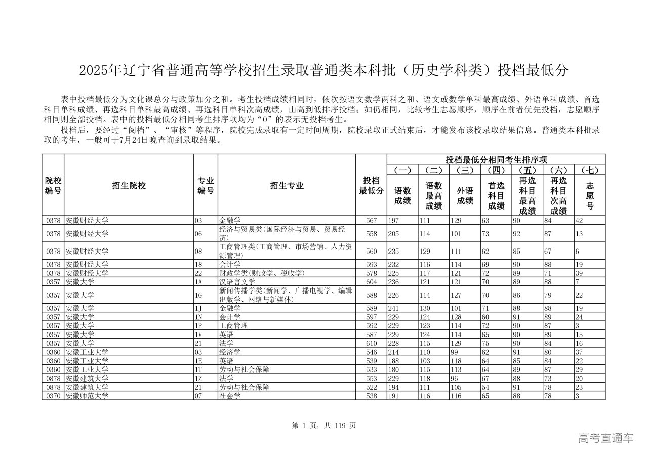 2025年辽宁省普通高等学校招生录取普通类本科批(历史学科类)投档最低分.pdf