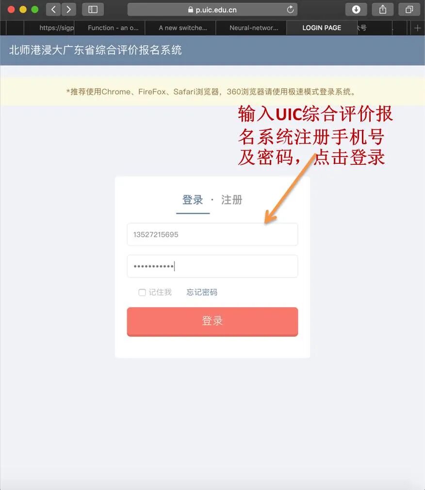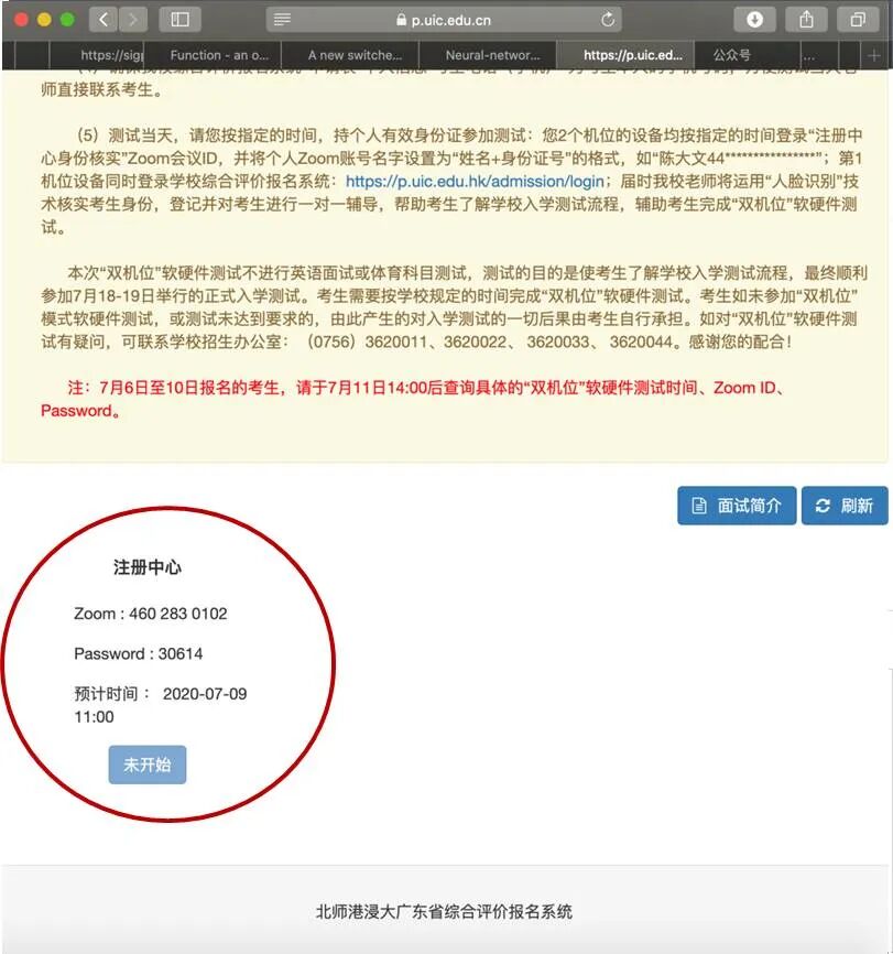 https://p.uic.edu.hk/admission/login,同时打开UIC综合评价报名系统与Zoom客户端,方便后续操作。