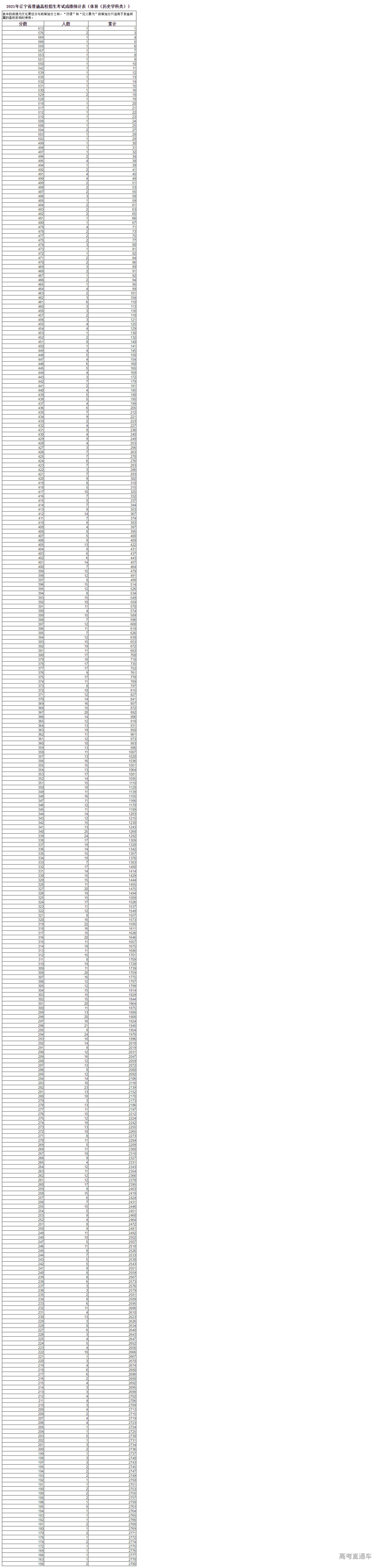 2021年辽宁省普通高校招生考试成绩统计表(体育(历史学科类))