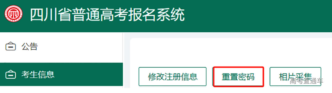 在“考生信息”界面,点击“重置密码”进入修改密码界面。