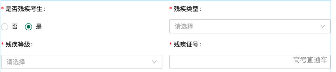 如果“是否残疾”选择“是”,需要填写相关信息。