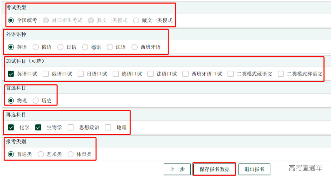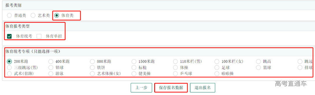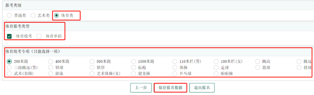 (2)报考全国统考的艺术、体育类考生,除了填报外语语种、选考科目、加试科目以外,报考类别需要选择艺术类或体育类。