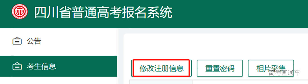 也可以登录后,进入考生信息页面,点击“修改注册信息”进行修改。