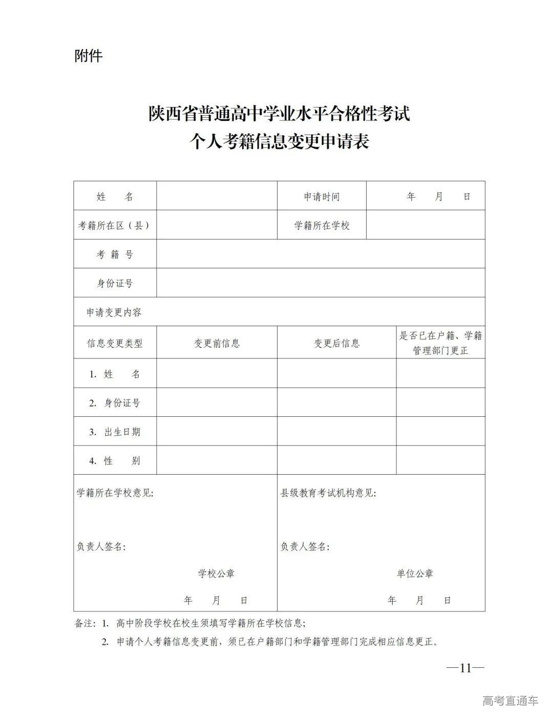附件:陕西省普通高中学业水平合格性考试个人考籍信息变更申请表