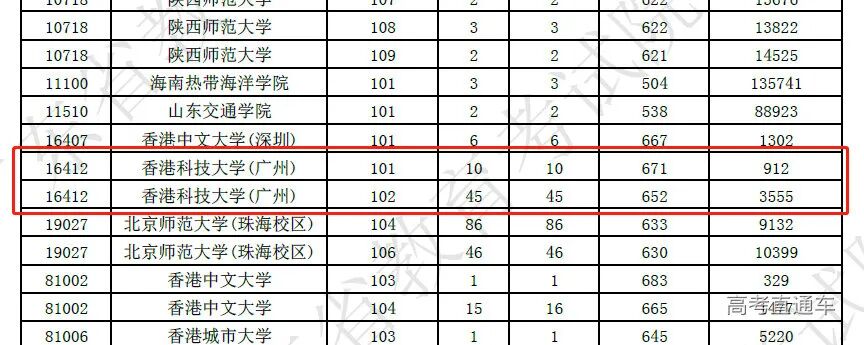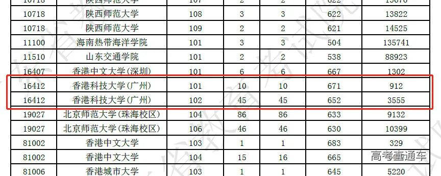 2023年,香港科技大学(广州)已经开始面向广东、山东、河南、四川4个省份招收本科生。其中,该校在广东本科提前批物理类招55人,全部专业的投档均超650分,报考热度极高。101专业组最低分671分,省排位912名,102专业组最低分652分,省排位3555名。