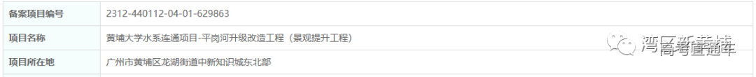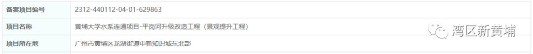 2023年12月,科学城(广州)投资集团有限公司发布了黄埔大学水系连通项目-平岗河升级改造工程(景观提升工程)建设备案。