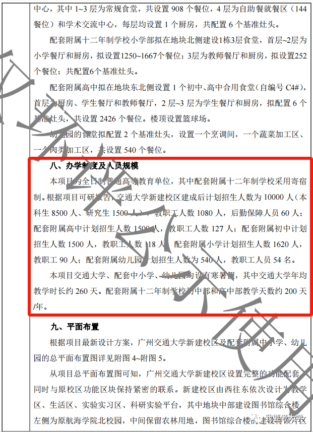 据项目可研报告,交通大学新建校区建成后计划招生人数为10000人(本科生8500人、研究生1500人),教职工人数1080人,后勤保障人员60人。