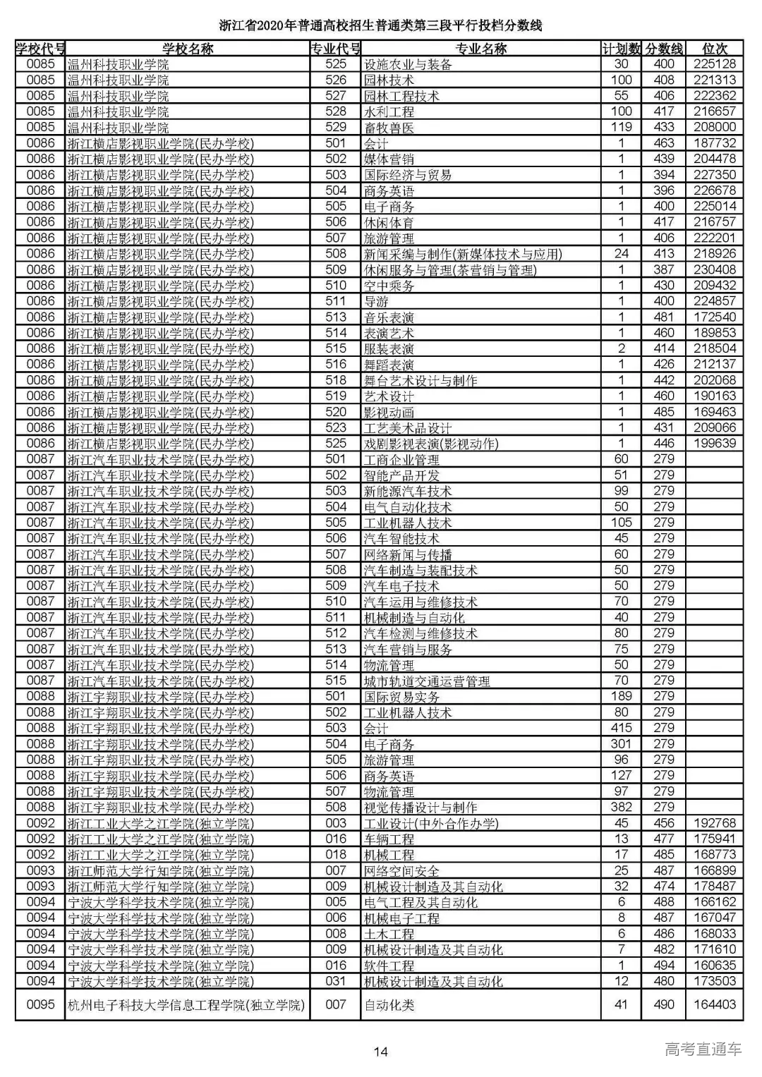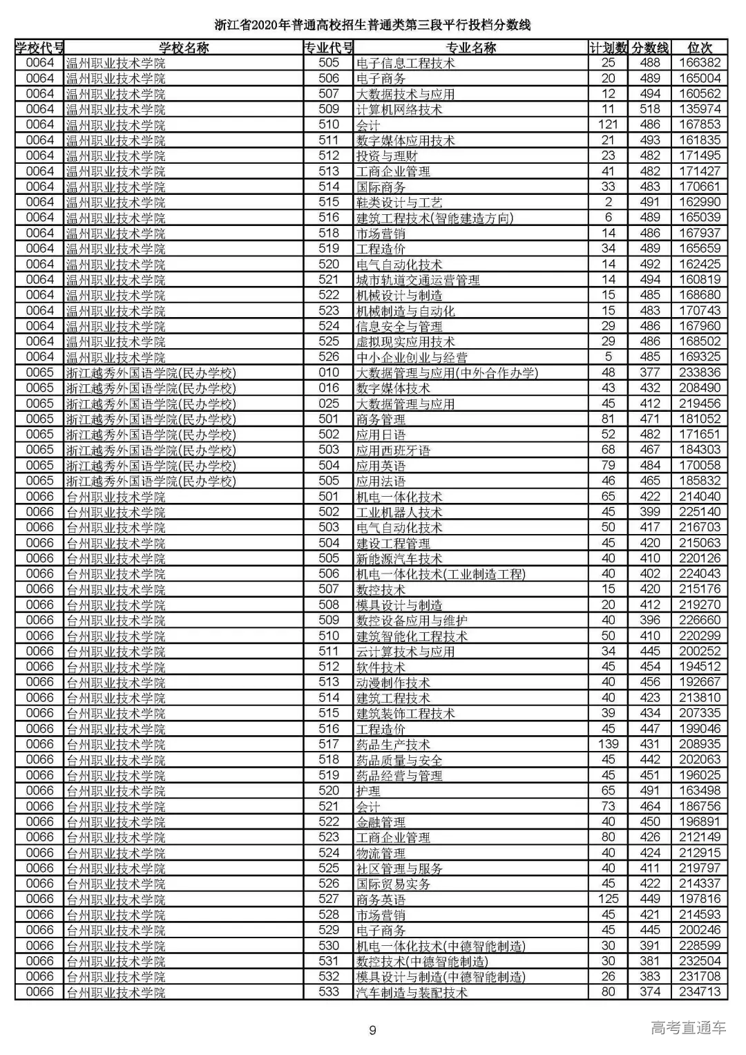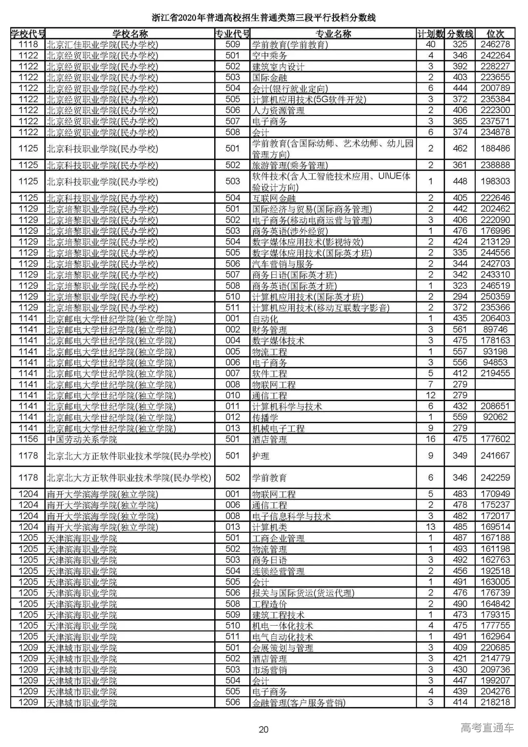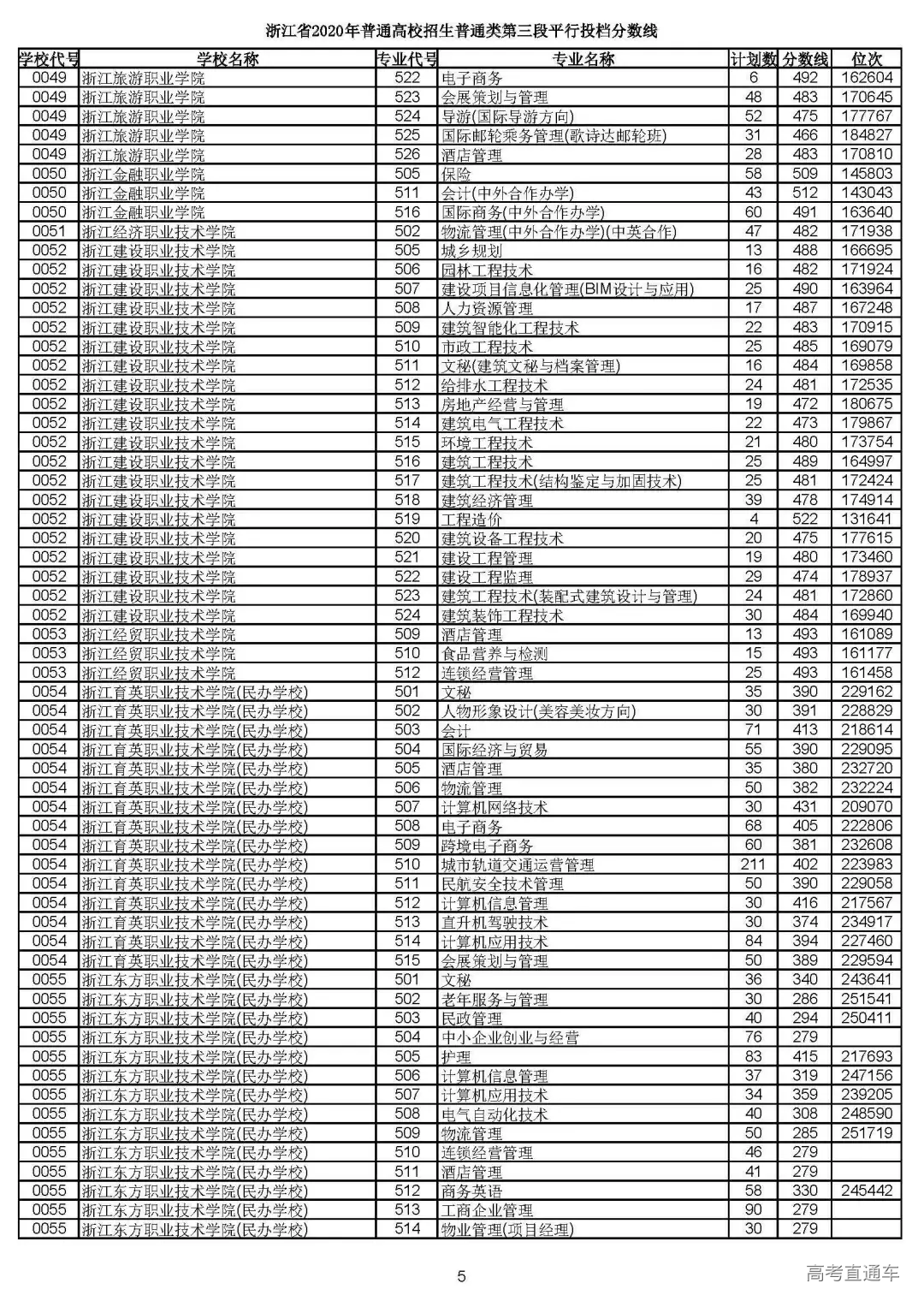 浙江省2020年普通高校招生
