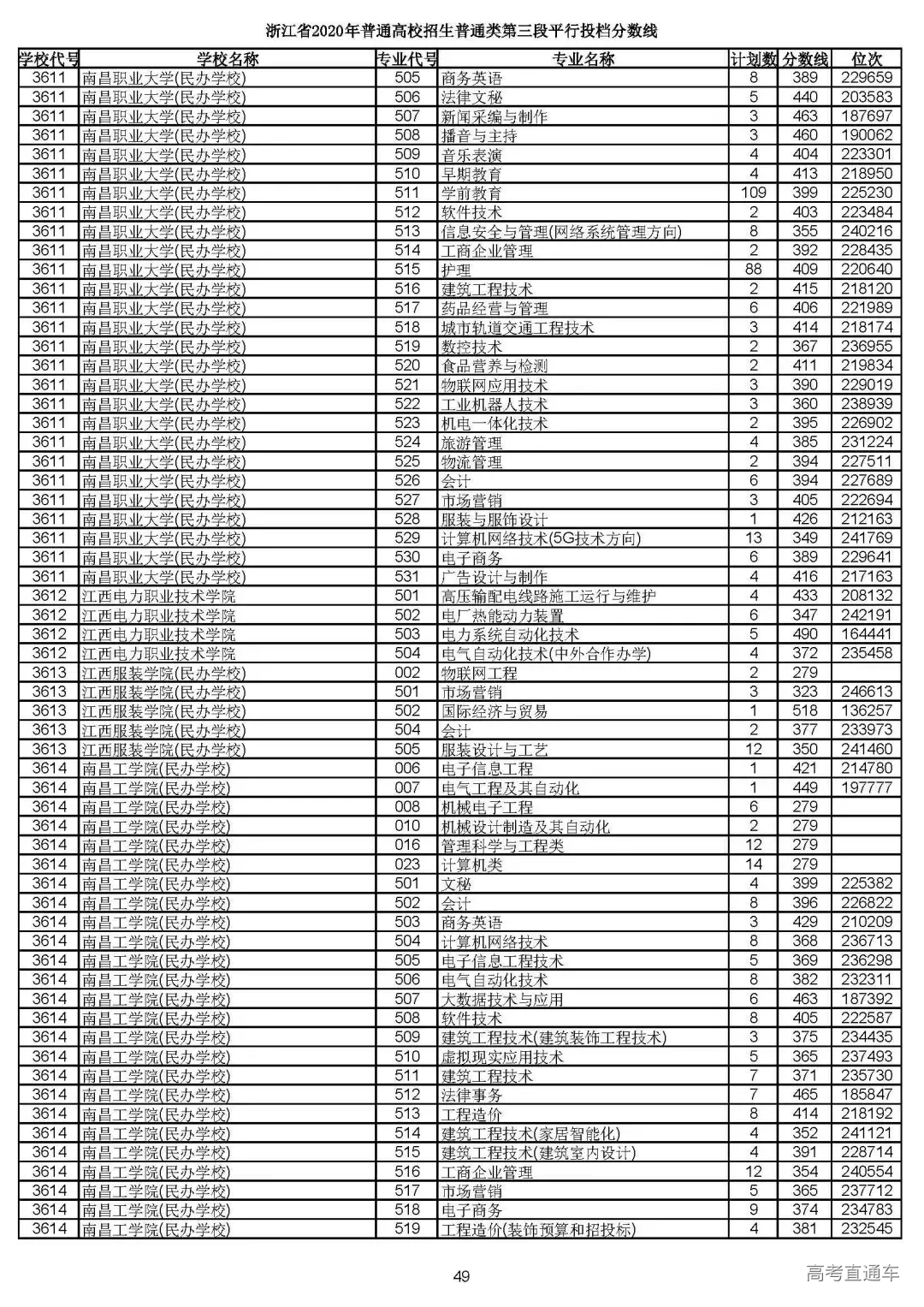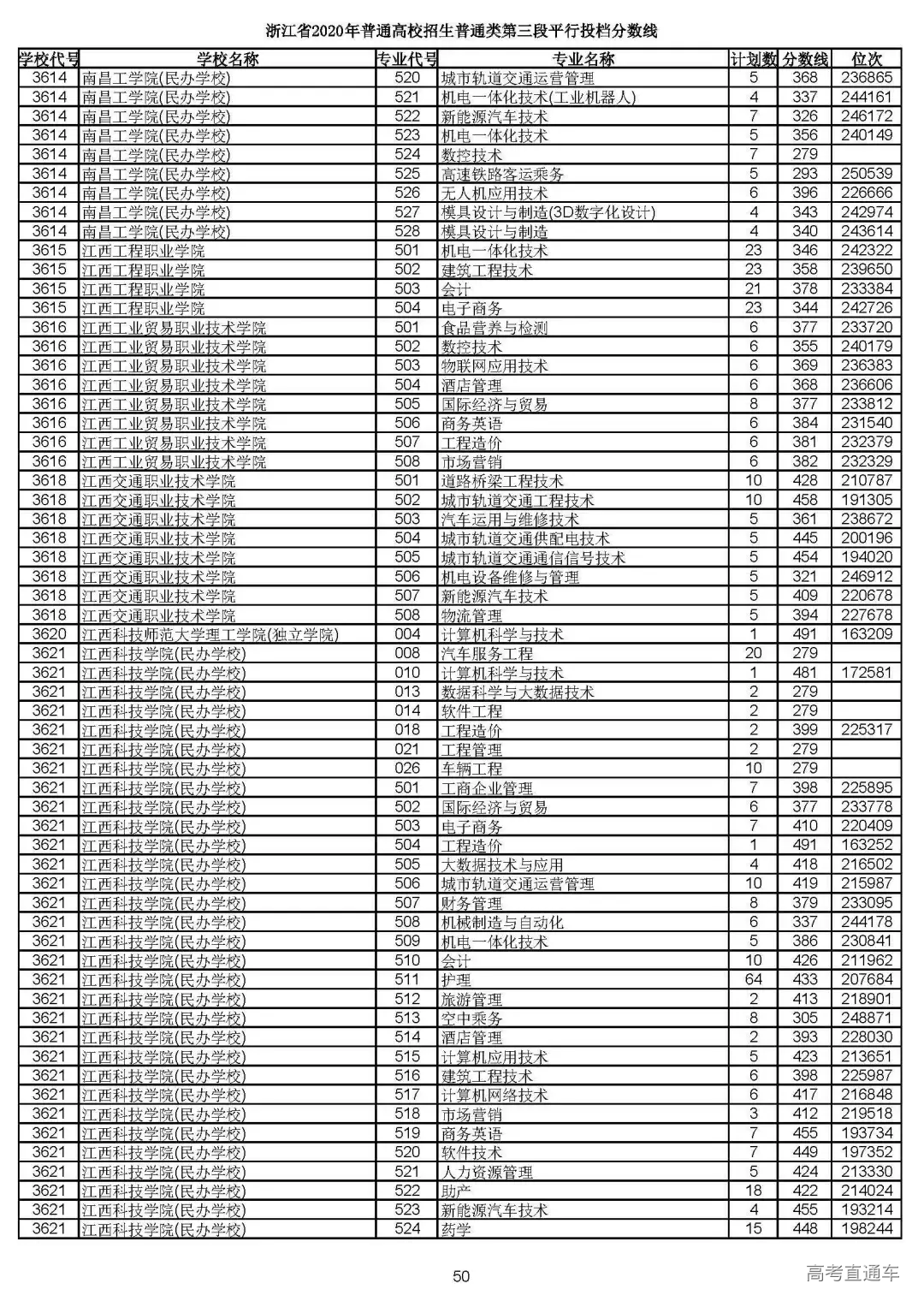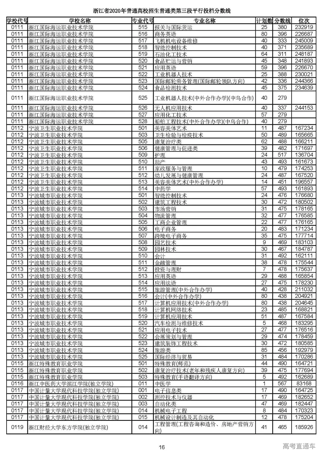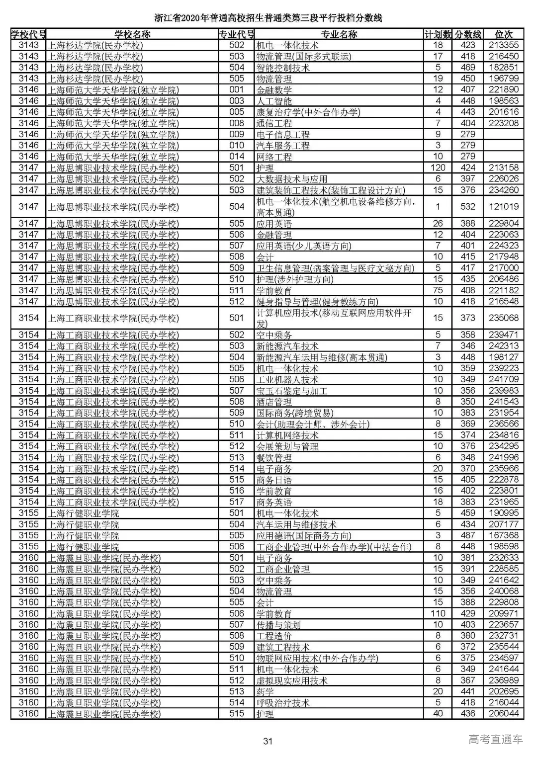 浙江省2020年普通高校招生