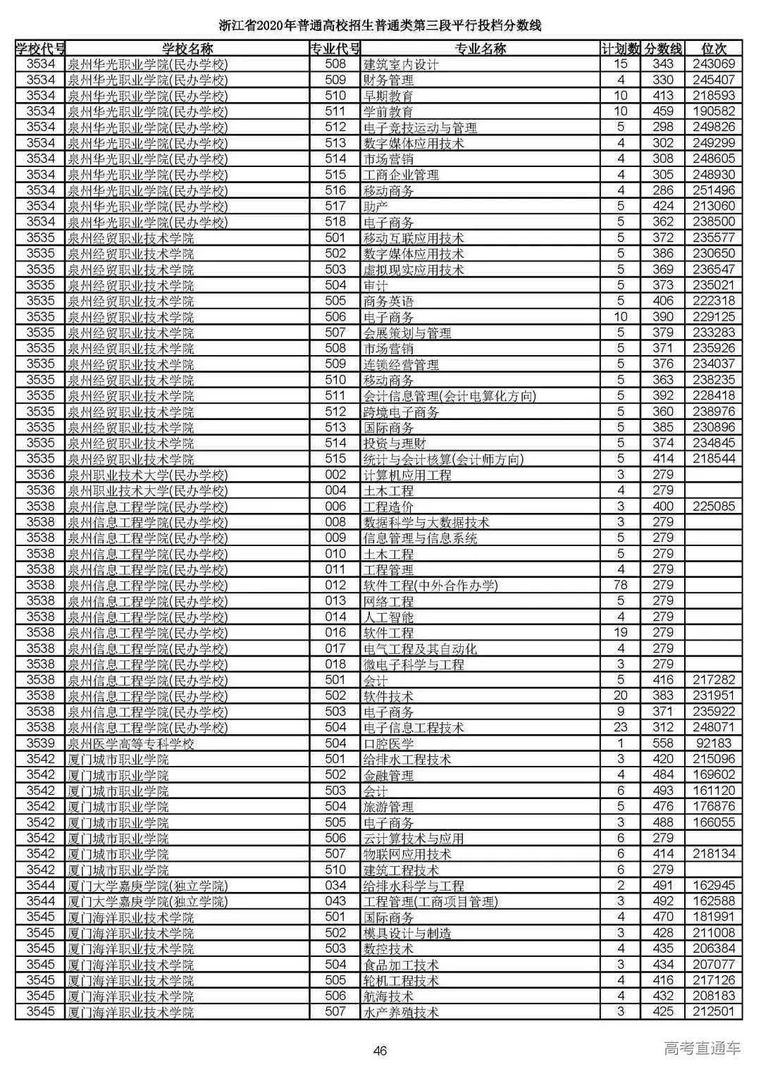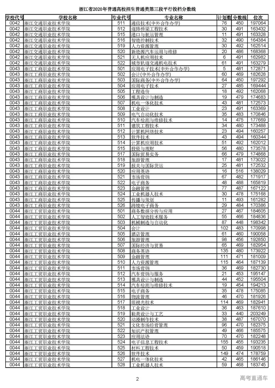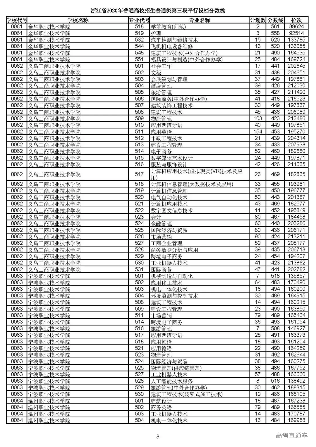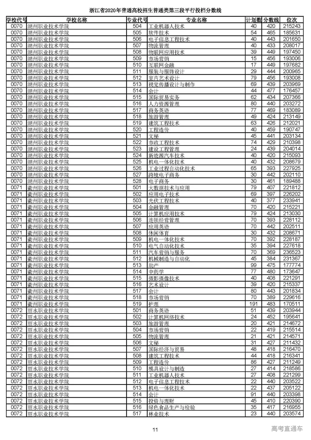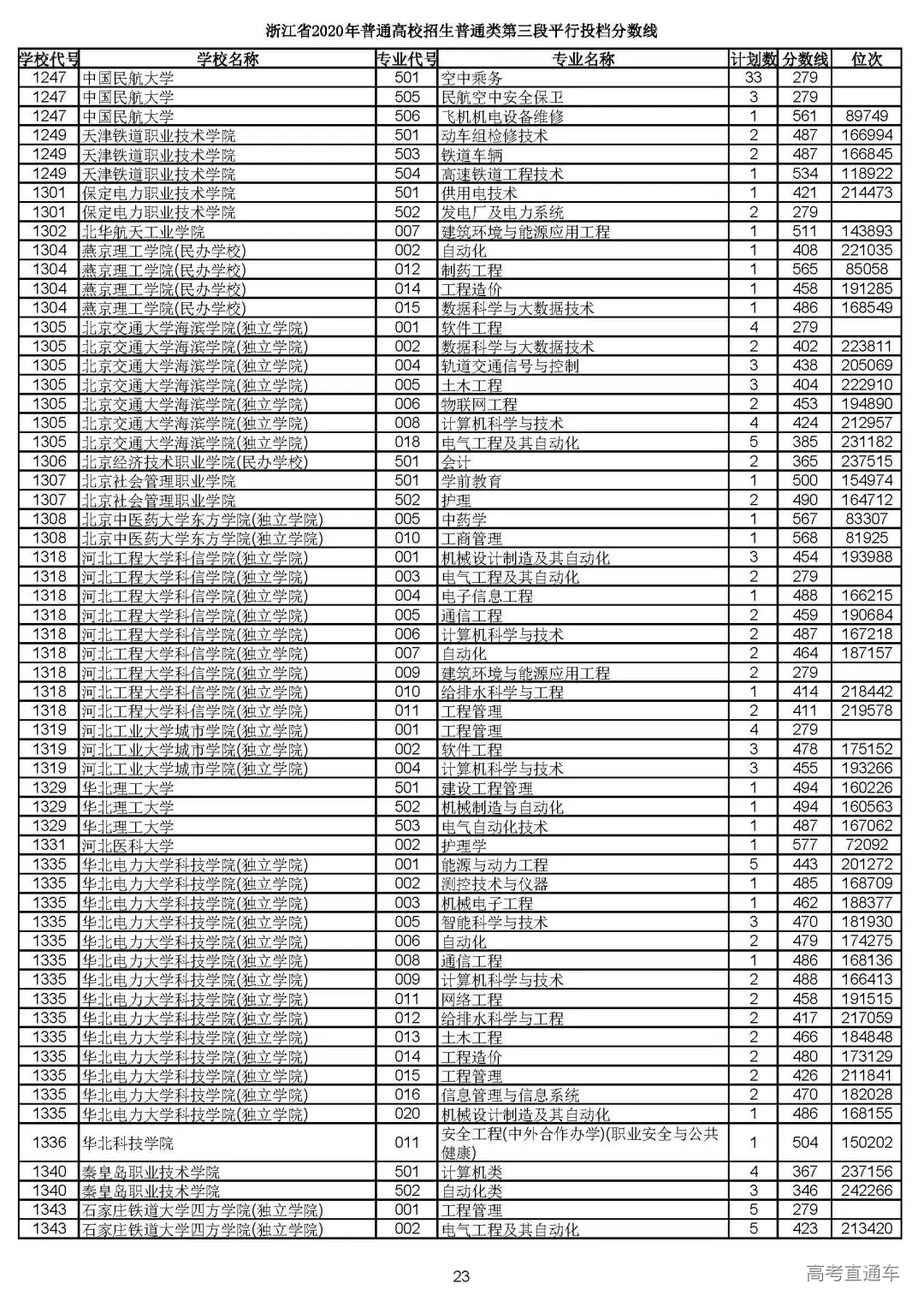 浙江省2020年普通高校招生