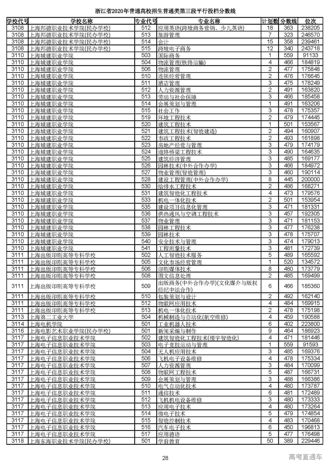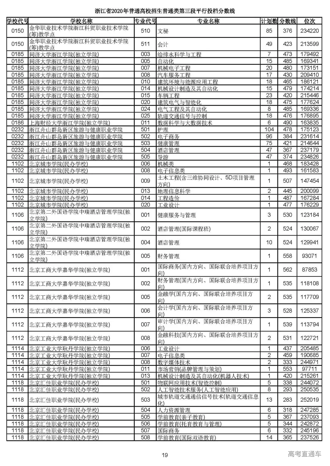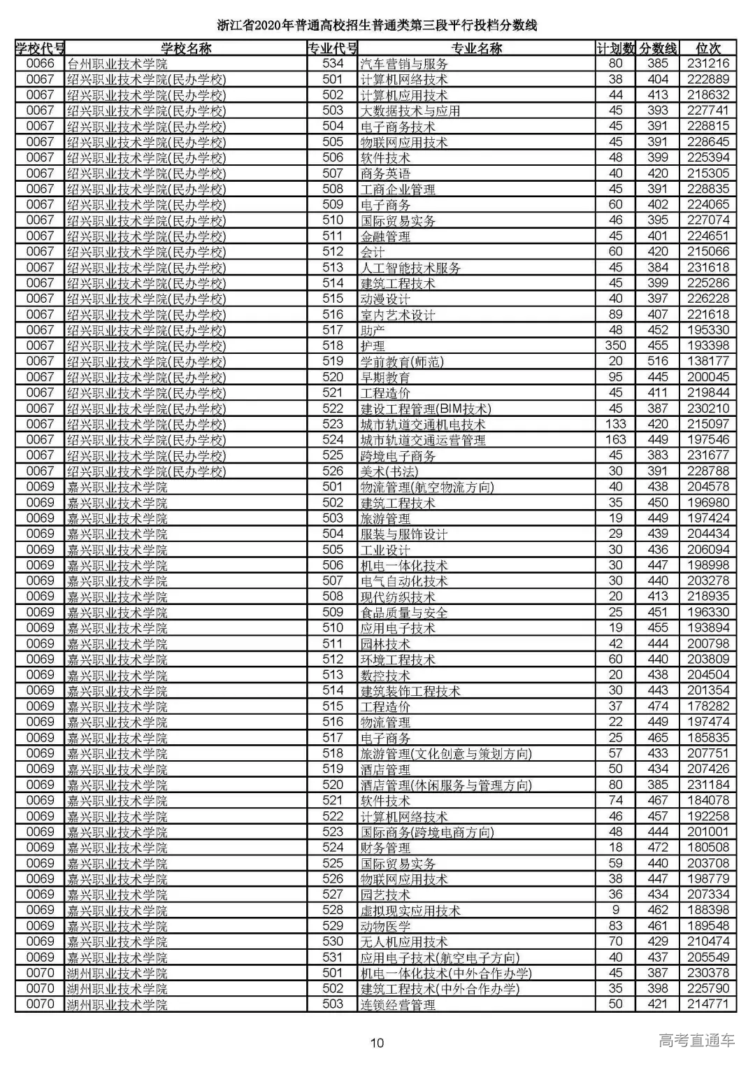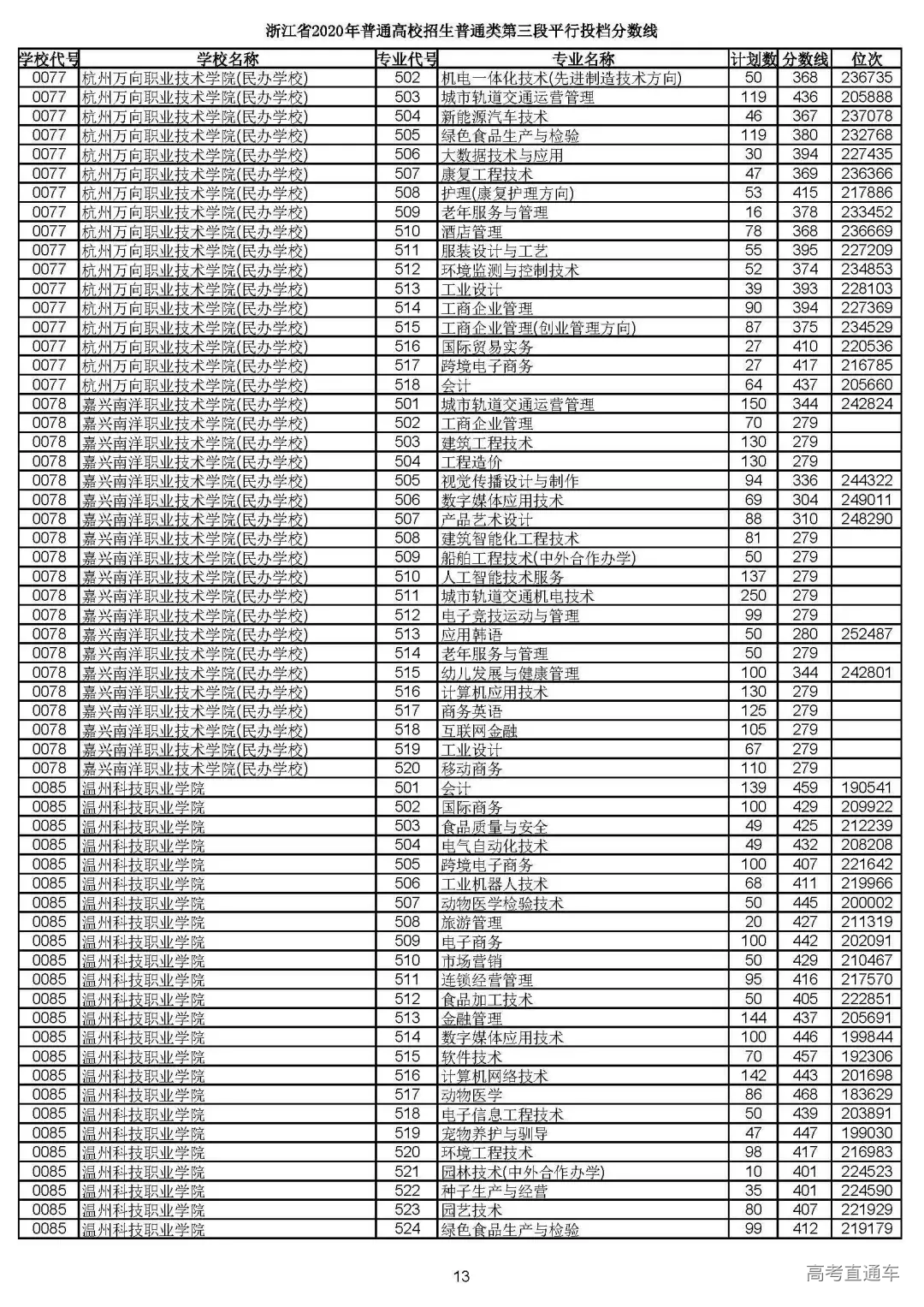 浙江省2020年普通高校招生