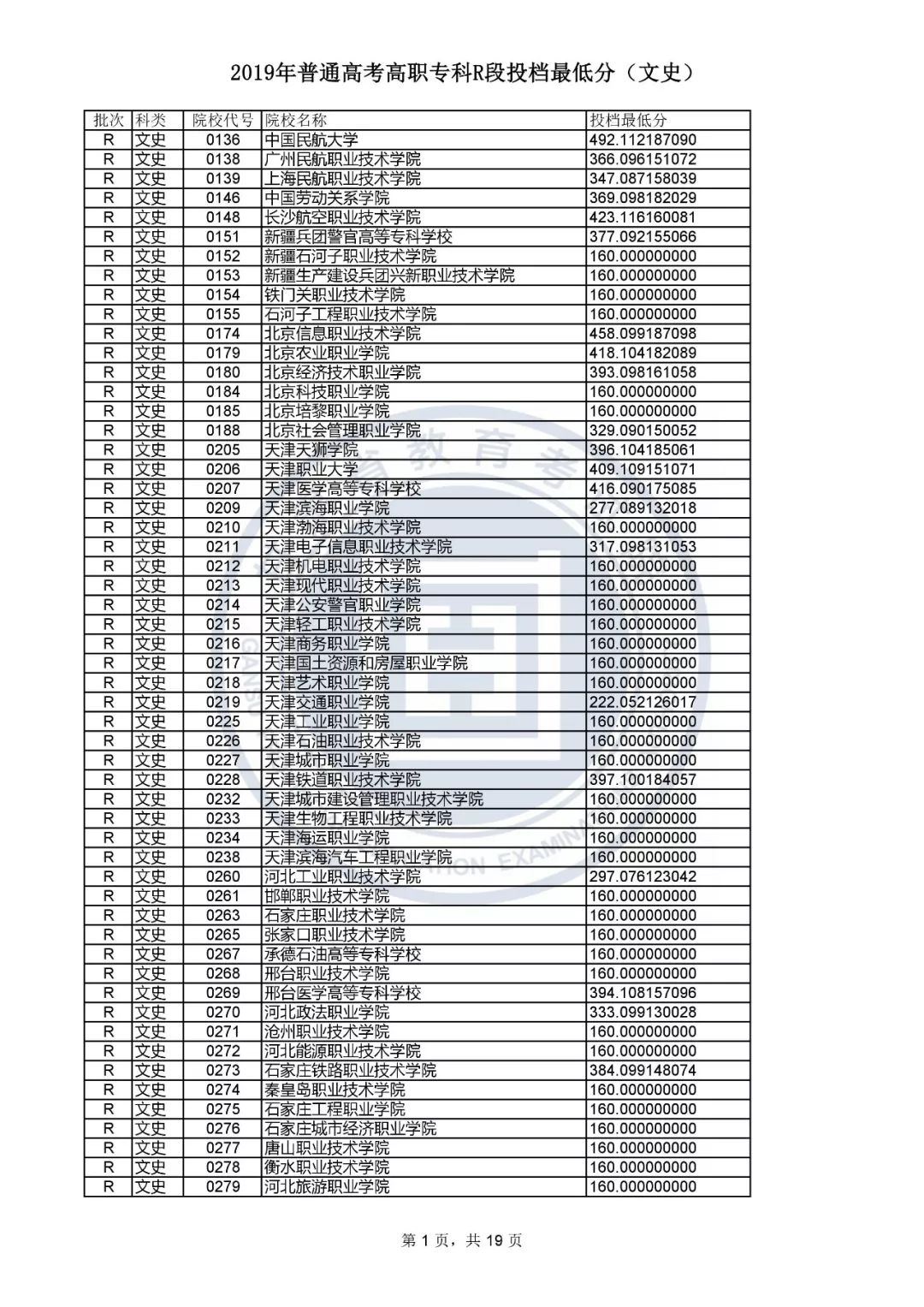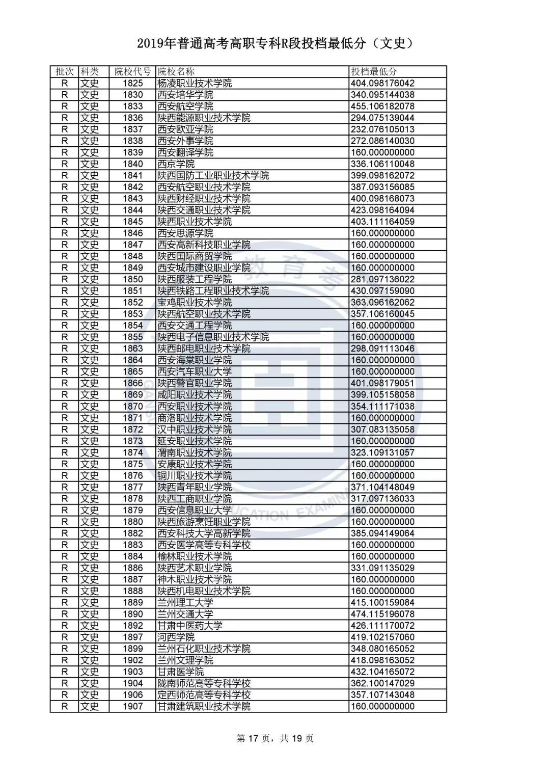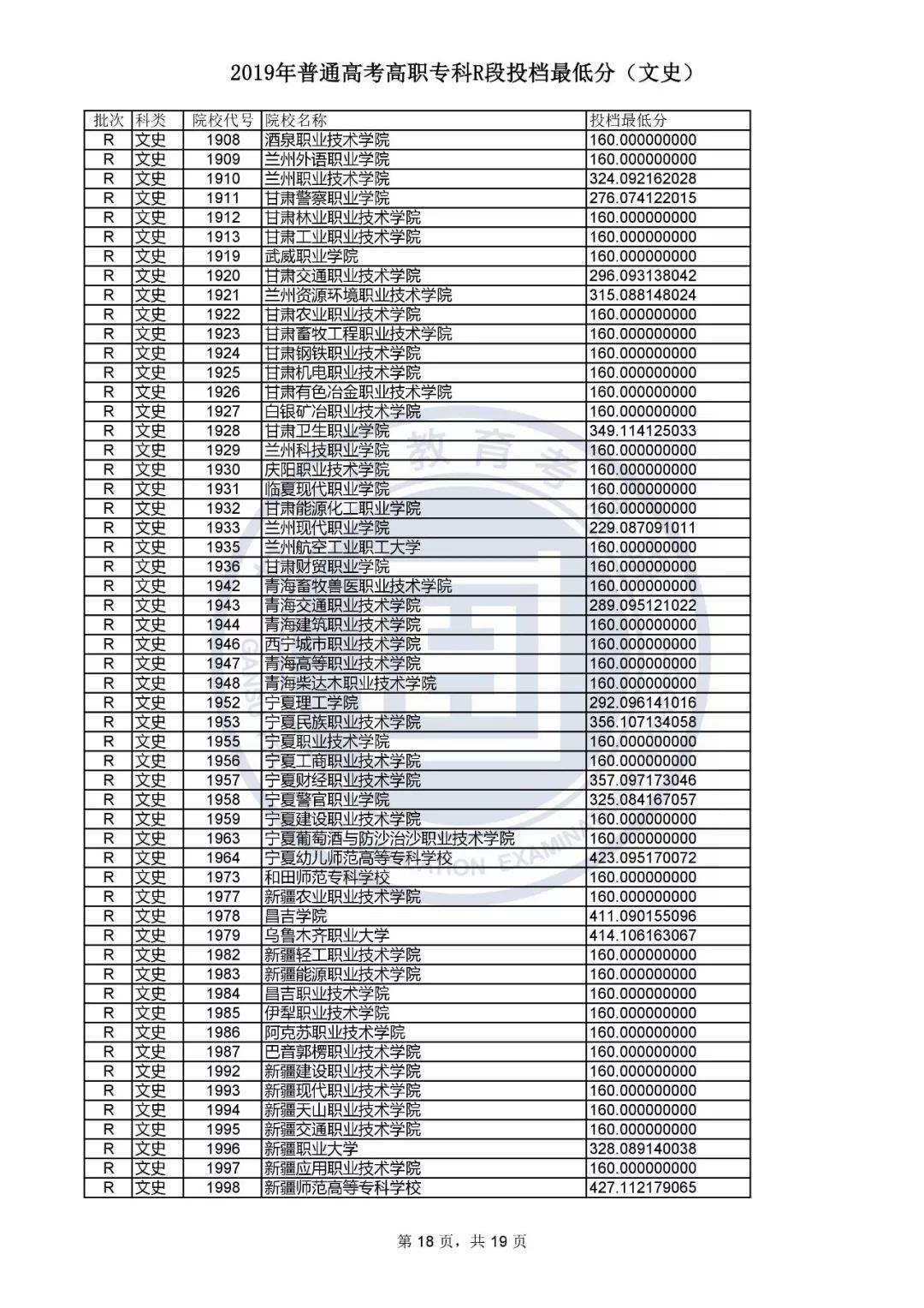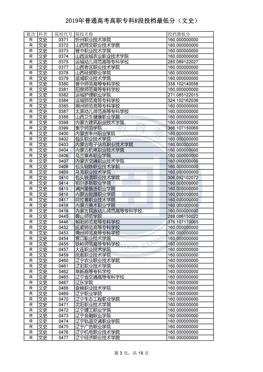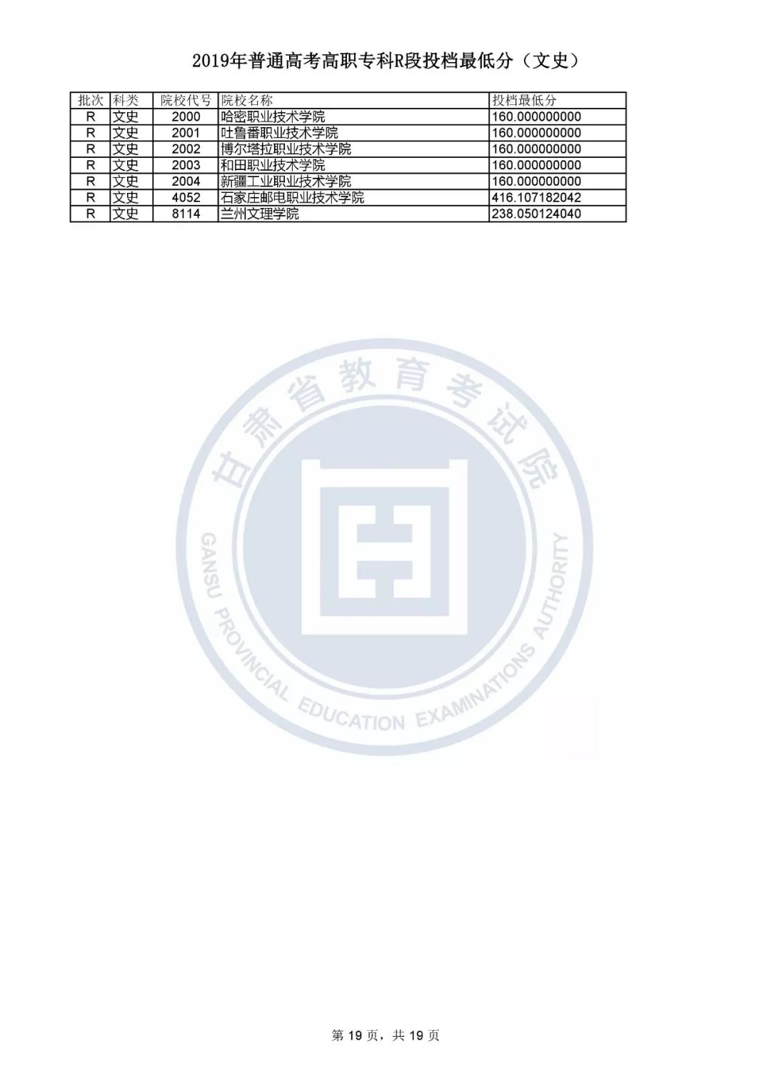 3.部分院校有多种招生类型,同一所院校会出现不同的投档最低分,具体请根据院校代号对照《2019年甘肃省普通高校招生专业目录》。