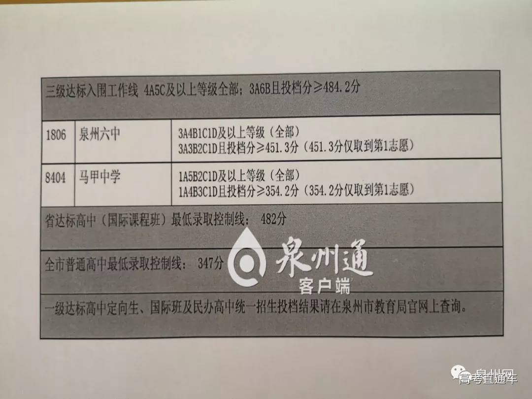 2.泉州市区六所省一级达标高中录取。按照统招生、定向生批次依次录取。