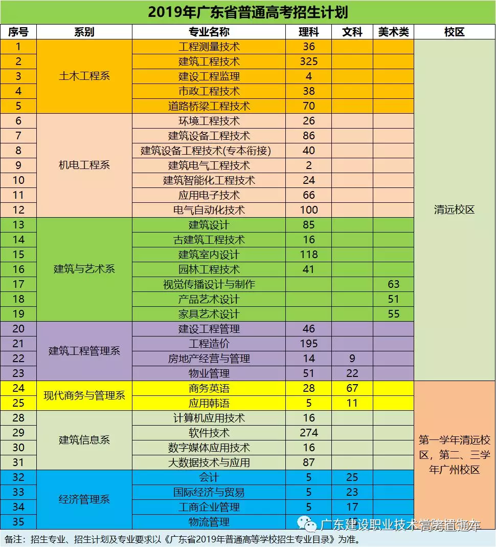学院创建于1979年,是隶属广东省教育厅管理的公办院校,被誉为“现代鲁班的摇篮”。录取批次为专科。学院有广州校区和清远校区两个校区,校园环境优美,师资力量雄厚,设施完善,教学仪器设备充足,图书馆藏书丰富。清远校区位于清远市清城区环城东路省职教示范基地,占地800亩,以“特色校园,文化校园,智慧校园,山水校园”为建设理念。学院办学40年来培养培训了15万名高素质技术技能型人才;以建筑类专业为主,涵括机电、市政、环保、艺术设计、电子信息、财经等领域;学生专业技术能力强,广受用人单位欢迎;毕业生创业创富能力强,校友企业遍布全省各地;毕业生就业率保持在98%以上。