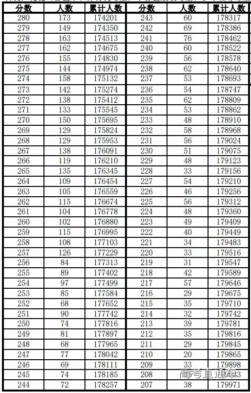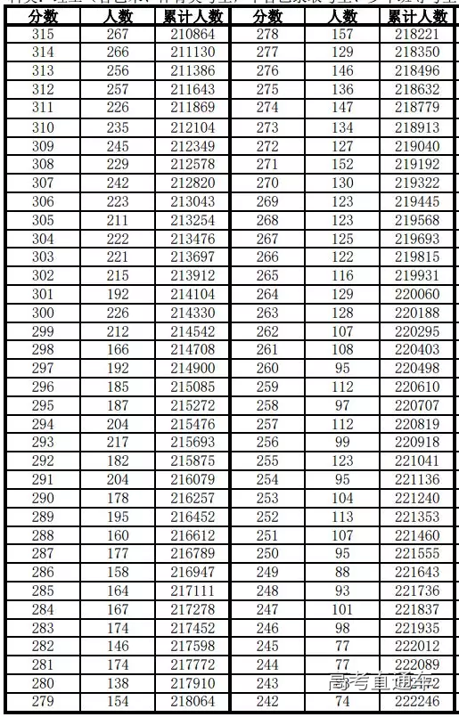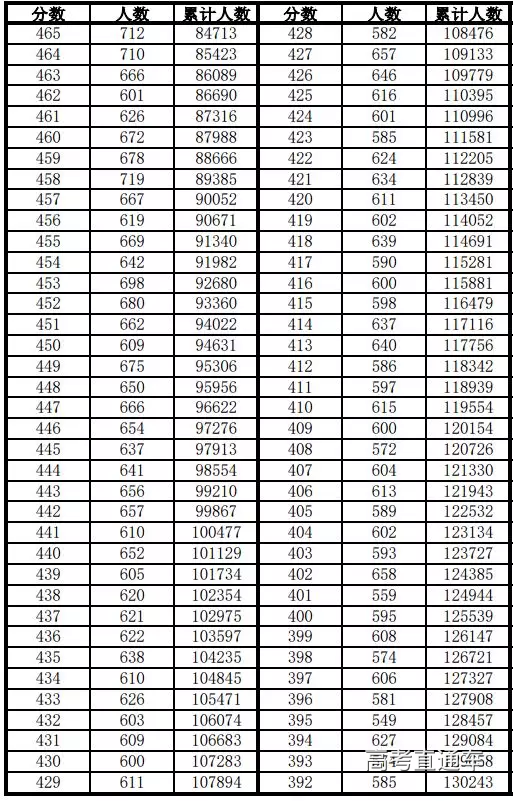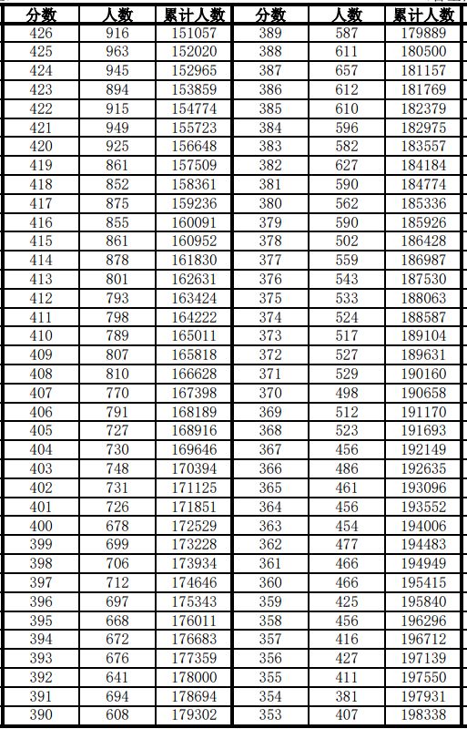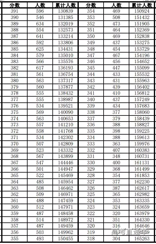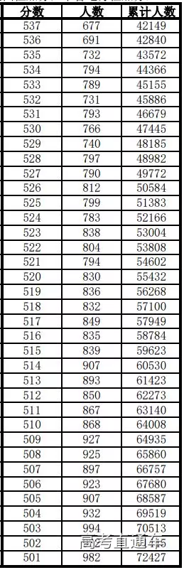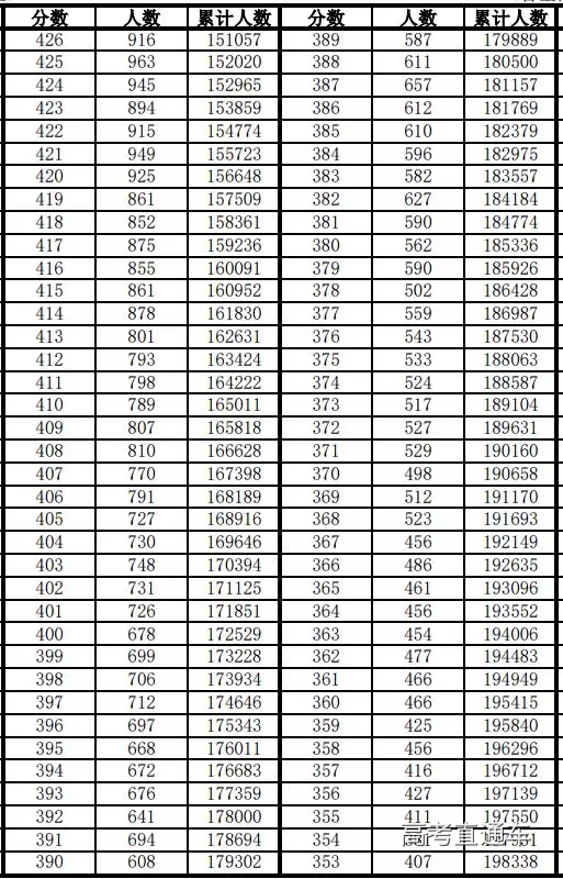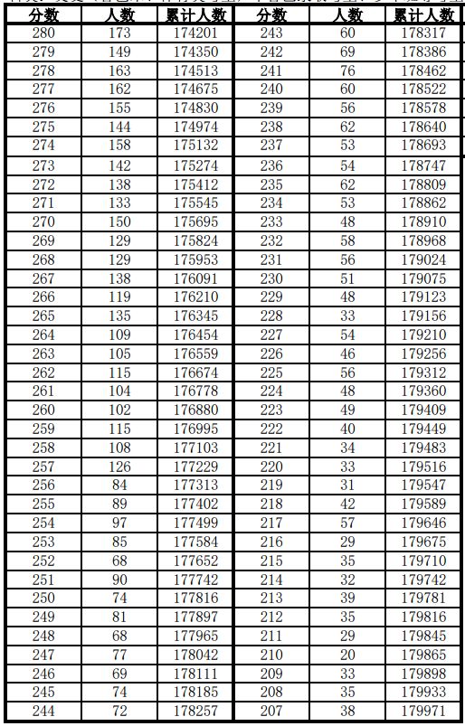 它显示每一个分数全省考生有多少名,能让你计算出自己的排位。目前的段表,是将全省同科类考生的档案分(考生总分+政策加分)从高到低排列(分数相同的则为并列),再按每1分一段,统计“本段人数”;从本段向上一直到最高分段的所有“本段人数”相加,则为“累计人数”。一分一段表上显示出每一个分数全省的考生有多少名,这个数据的参考价值最大。