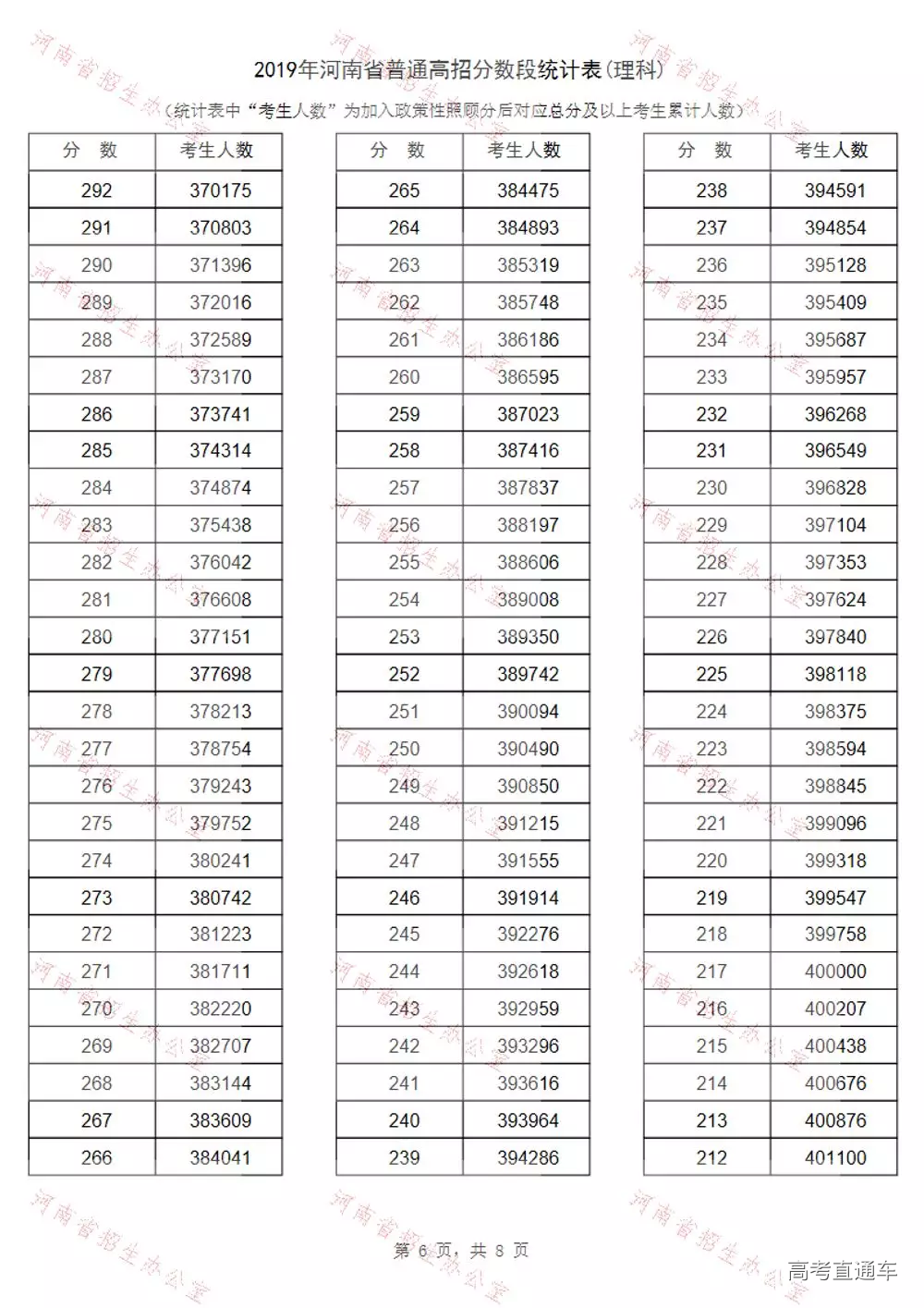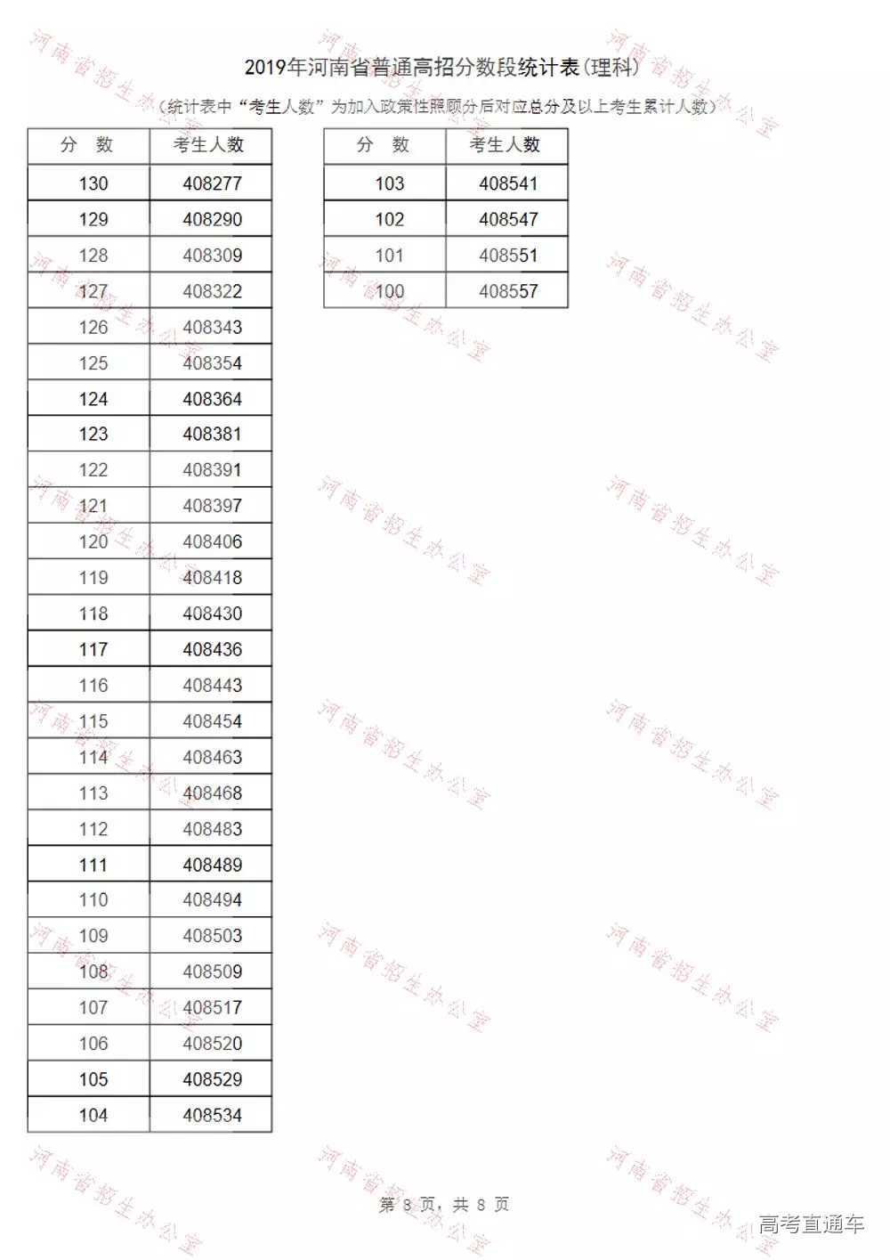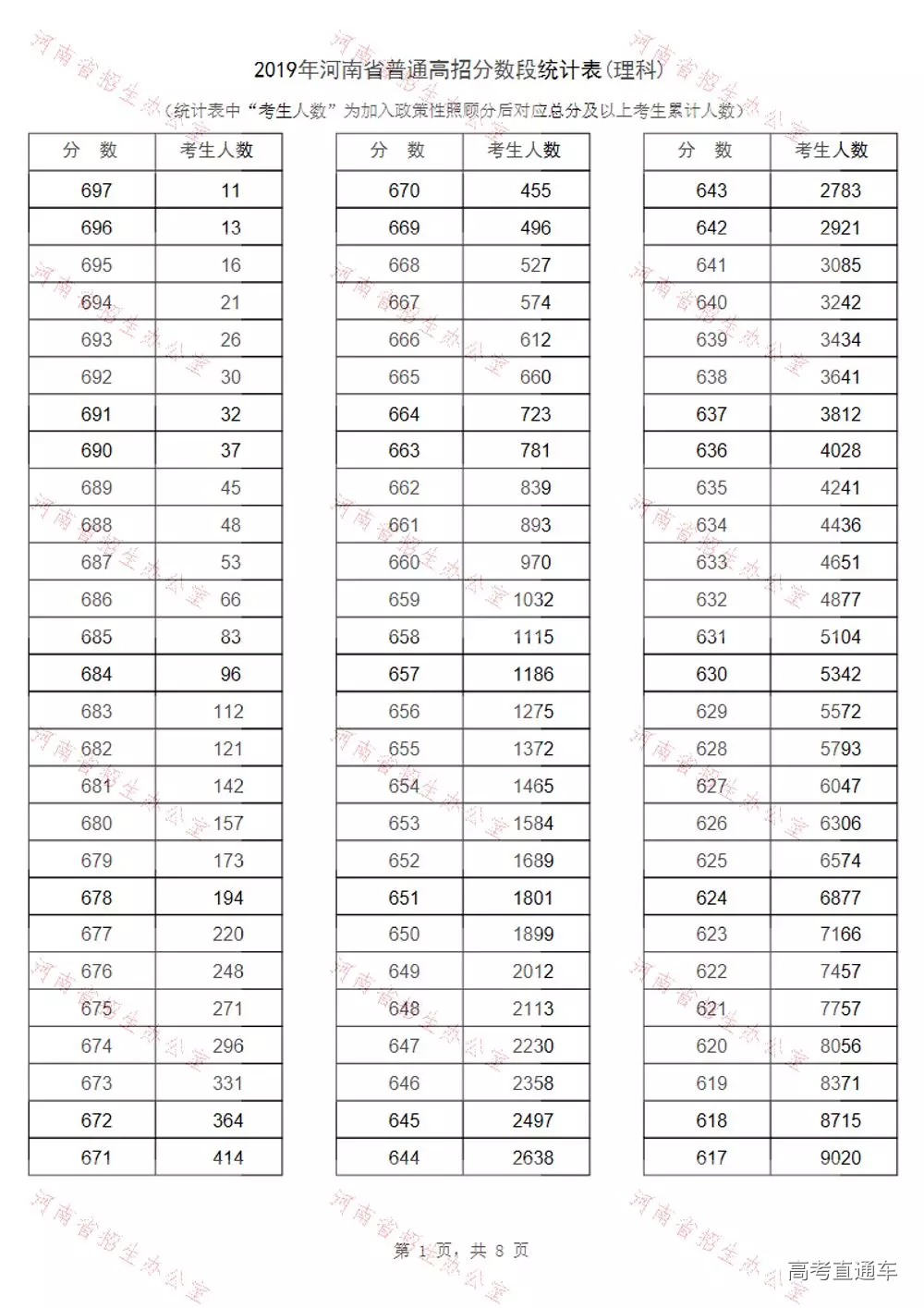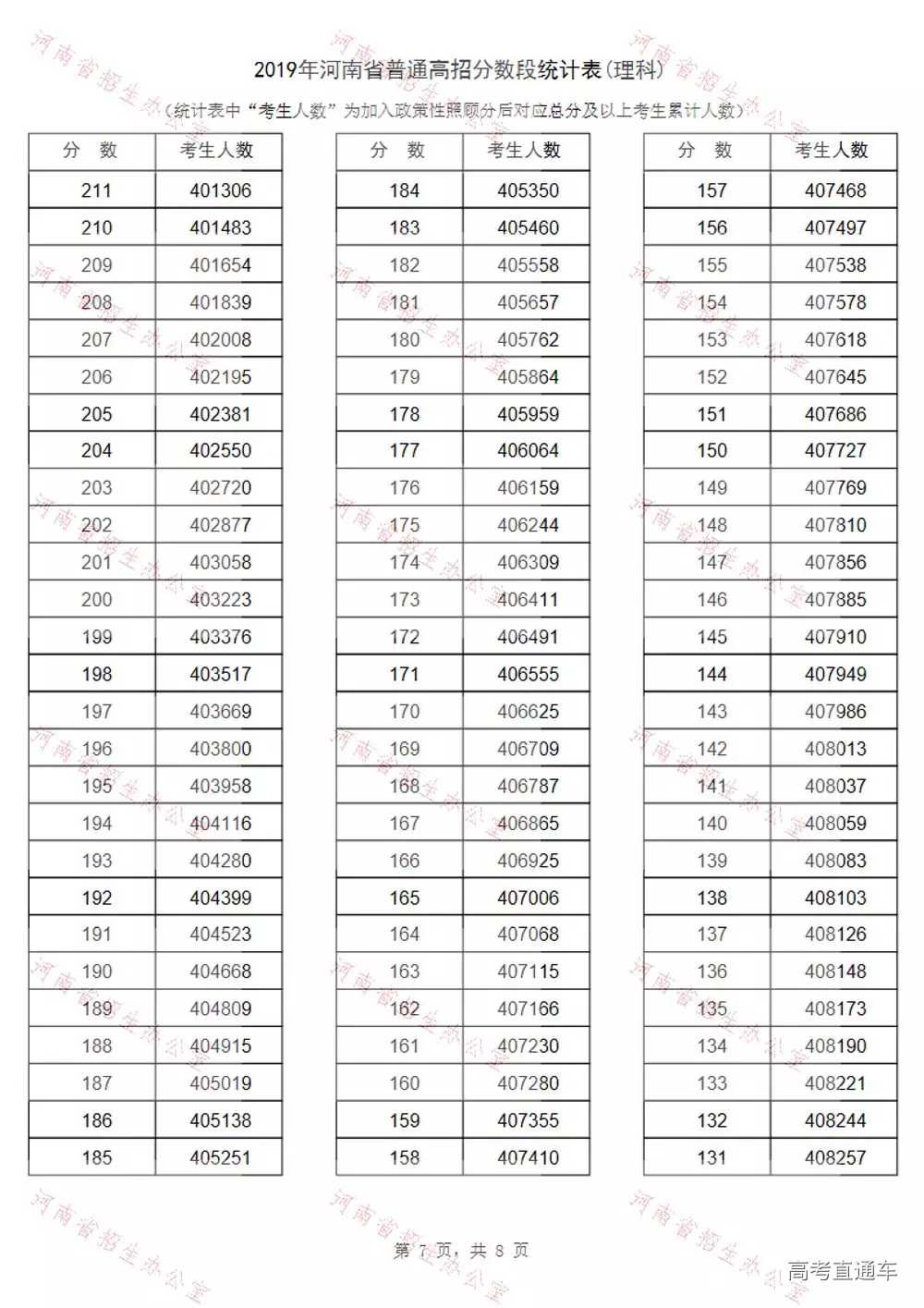 “一分一段”表内对每一个分数线上有多少考生、该分数线以上有多少考生进行了详细统计。普通文理科从100分起一分一段一公布,一直公布到最高分,其中的分数已经包含政策性照顾分。此外,专升本、对口生按专业、类别公布到最低控制分数线,以下的不再一分一段公布,艺术、体育类文化成绩排序包含在普通文理科中,不单独公布。