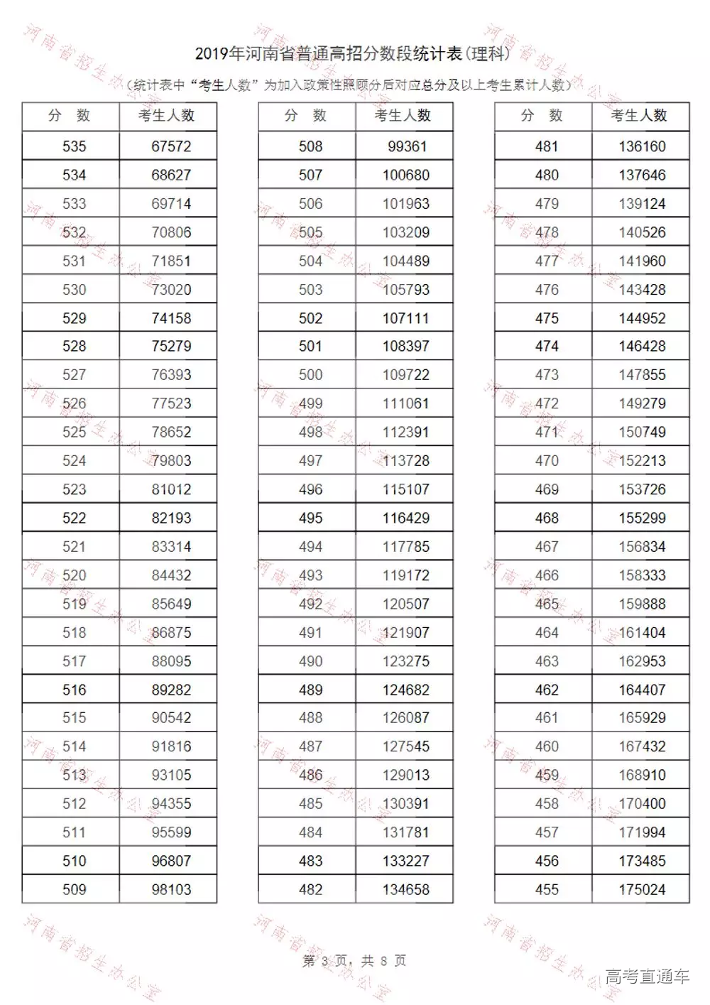 它显示每一个分数全省考生有多少名,能让你计算出自己的排位。目前的段表,是将全省同科类考生的档案分(考生总分+政策加分)从高到低排列(分数相同的则为并列),再按每1分一段,统计“本段人数”;从本段向上一直到最高分段的所有“本段人数”相加,则为“累计人数”。一分一段表上显示出每一个分数全省的考生有多少名,这个数据的参考价值最大。