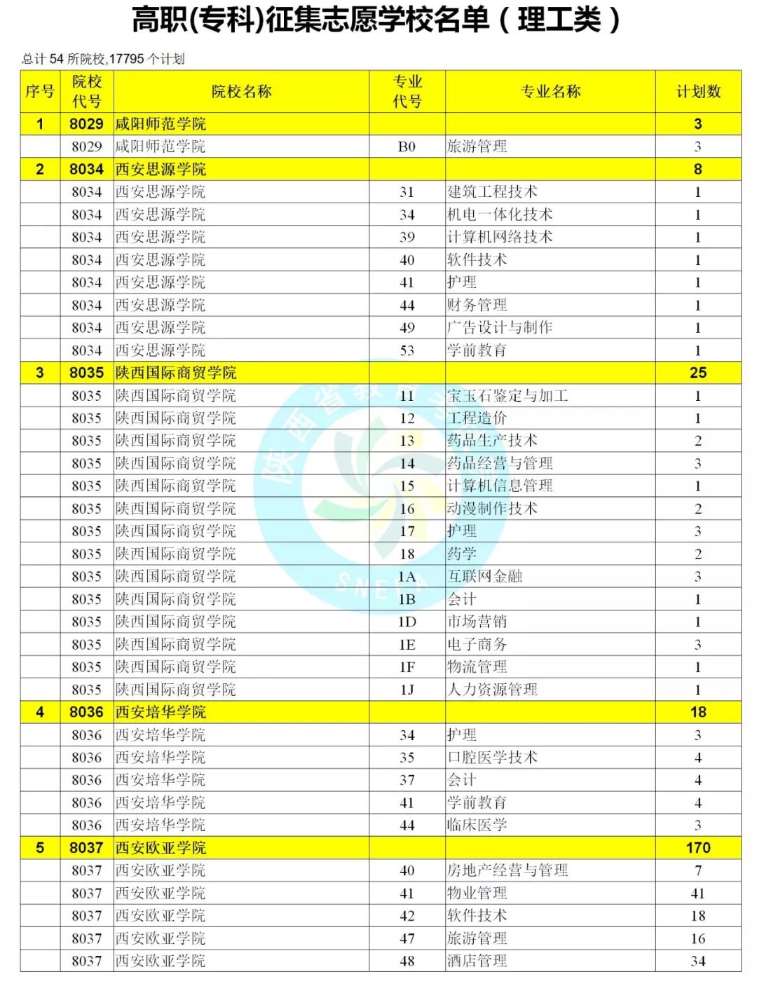 希望广大考生把握住上学深造、提升自我的机会,积极踊跃填报征集志愿。征集志愿院校及专业信息(详见下表)。达到高职(专科)录取控制分数线且尚未被录取的考生,可于8月15日15:00前登录陕西招生考试信息网或陕西省教育考试院门户网站填报征集志愿。