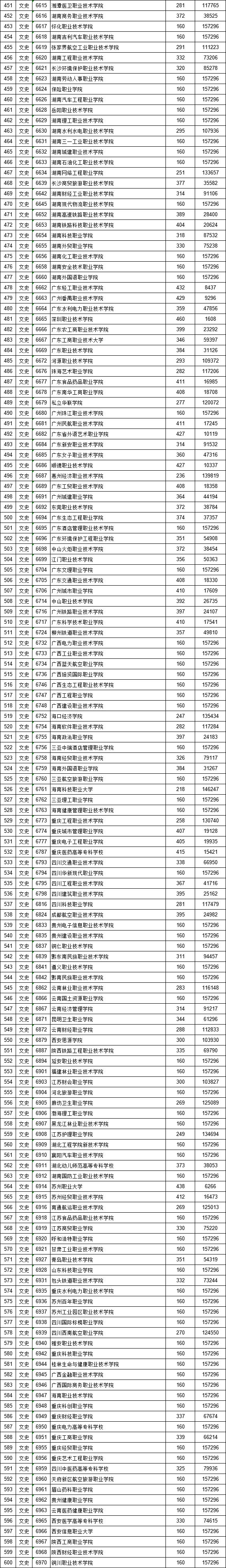 参加本批次“三校生”文理录取的院校共有55所,投档分数居前的3所院校分别是: