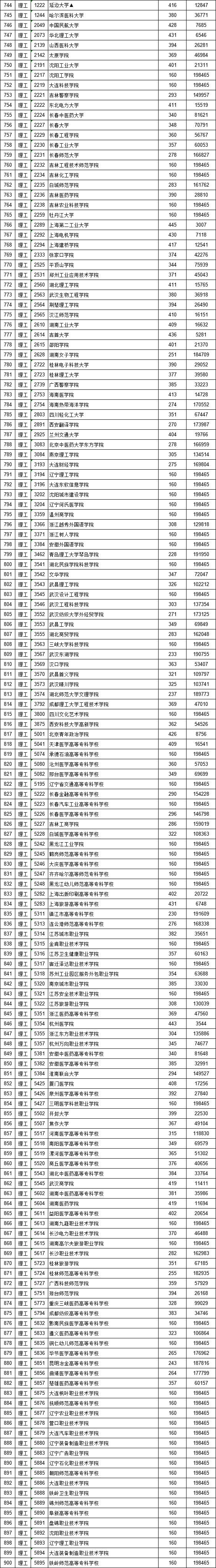 参加本批次录取的理工类院校共有772所,平行志愿投档满额院校有364所。投档分数居前的院校是: