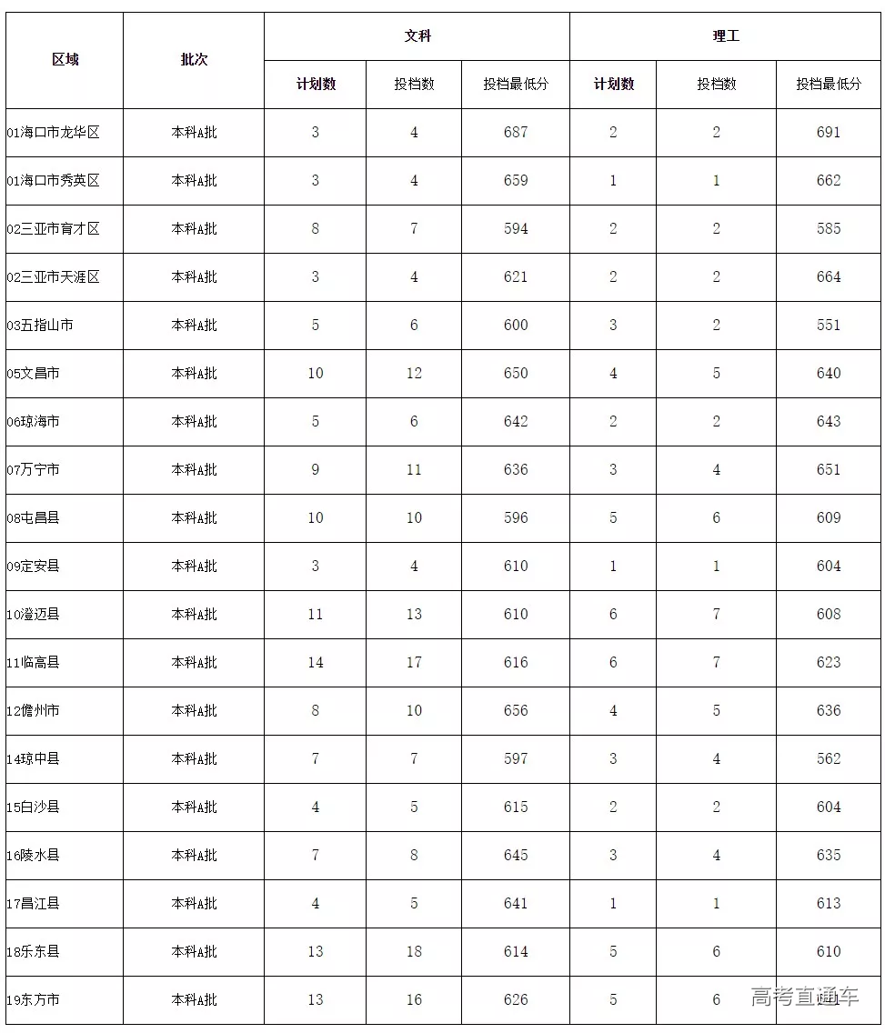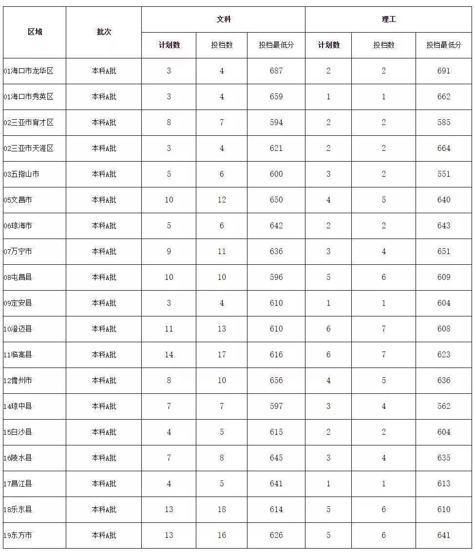 海南师范大学小学乡村教师定向免培生投档最低控制分数线