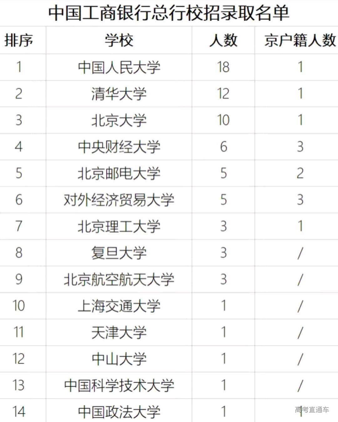 中国工商银行可以说是国内利润相当高的国有商业银行,绝大多数人在日常生活中都去过工商银行办理业务。在这样一家未来非常有发展前景的银行总行工作,还是非常不错的选择,因此,能够吸引到这么多顶尖名校的研究生前来报考。