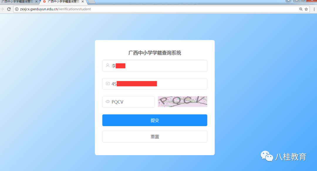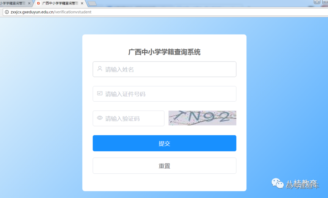 1. 登录网址:http://zxxjcx.gxeduyun.edu.cn,如下图所示: