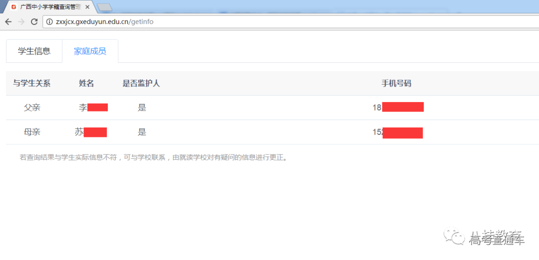 2.若监护人信息与学籍系统采集的信息不一致,将导致查询验证失败。
