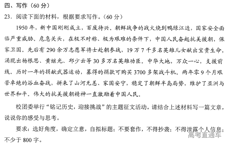 近年来,主旋律作文考得特别多。很多人只关注甄嬛、乾隆。但很少有人去了解邱少云、黄继光、吕松山。现在考试要求人民理解中国近现代的历史。这些伟大的历史人物让我们知道自己是怎么来的。