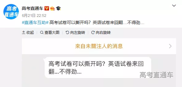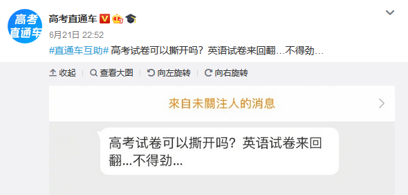 随着高考临近,很多同学也有很多关于高考中的疑惑,近日,有同学向高考直通车微博投稿:高考试卷可以撕开吗?因为英语试卷要来回翻很麻烦。那在高考过程中可以撕开试卷吗?