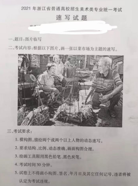 在杭州市美术职业学校(莫干山校区)门口,小陈同学是记者遇到第一个走出考场的考生,她告诉记者,今年的考题是4分之3青年男性侧面,自己发挥还算稳定,不好也不坏,说完她就匆忙赶去就餐,为下午的考试蓄力。