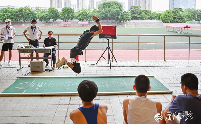 立定跳远测试。(本报记者 林铭鸿 摄)