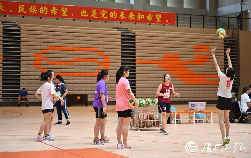 女生气排球颠球练习。(本报记者 林铭鸿 摄)